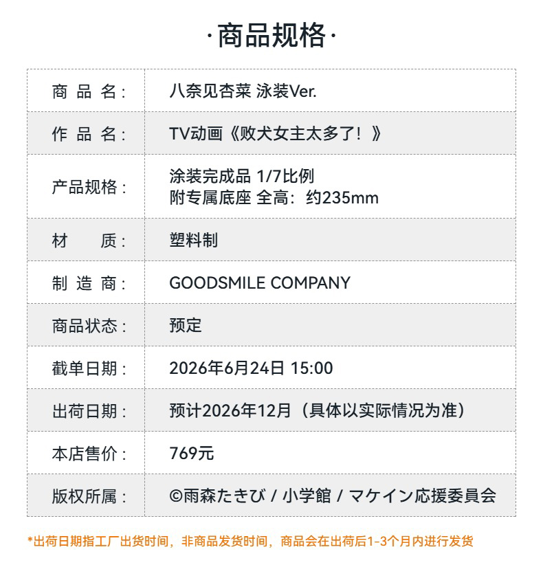 【GSC预售定金】1/7标准比例 八奈见杏菜 泳装Ver. TV动画《败犬女主太多了!》