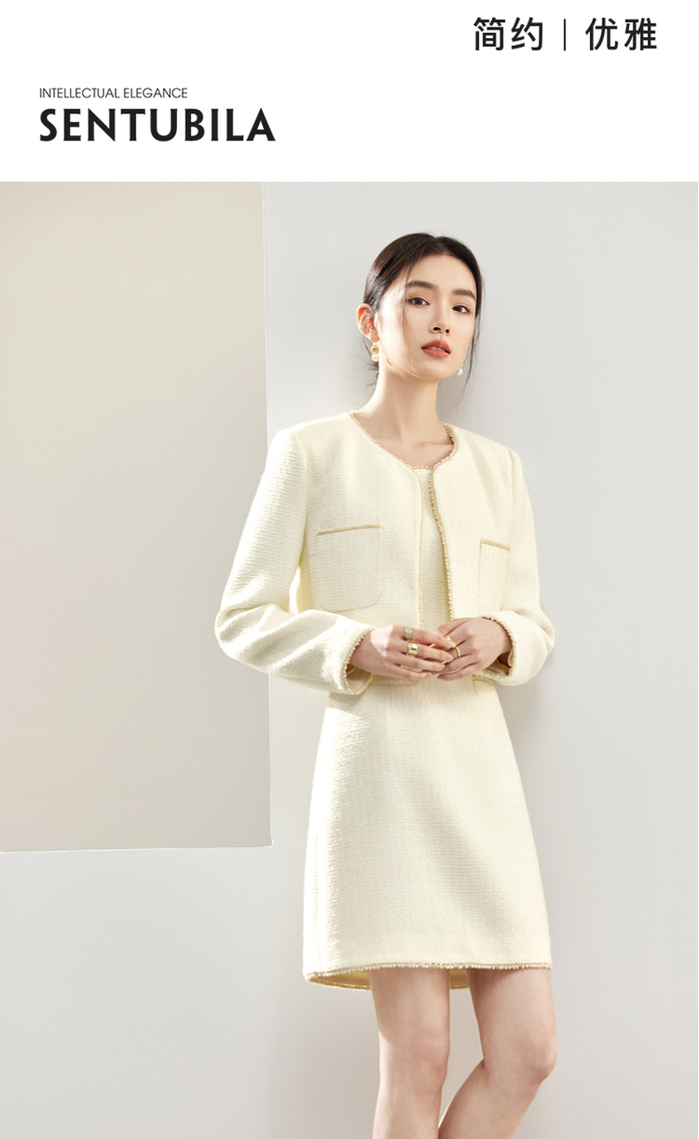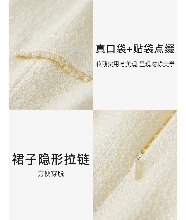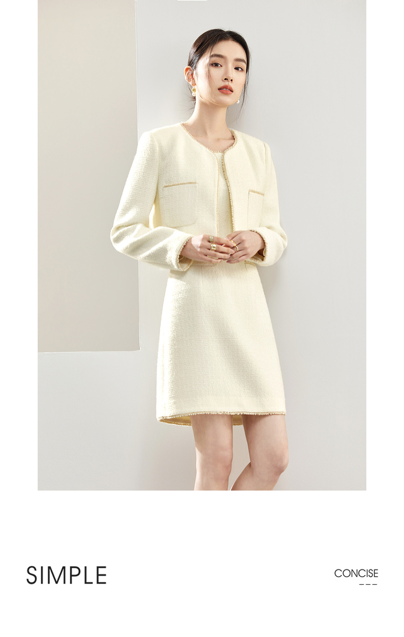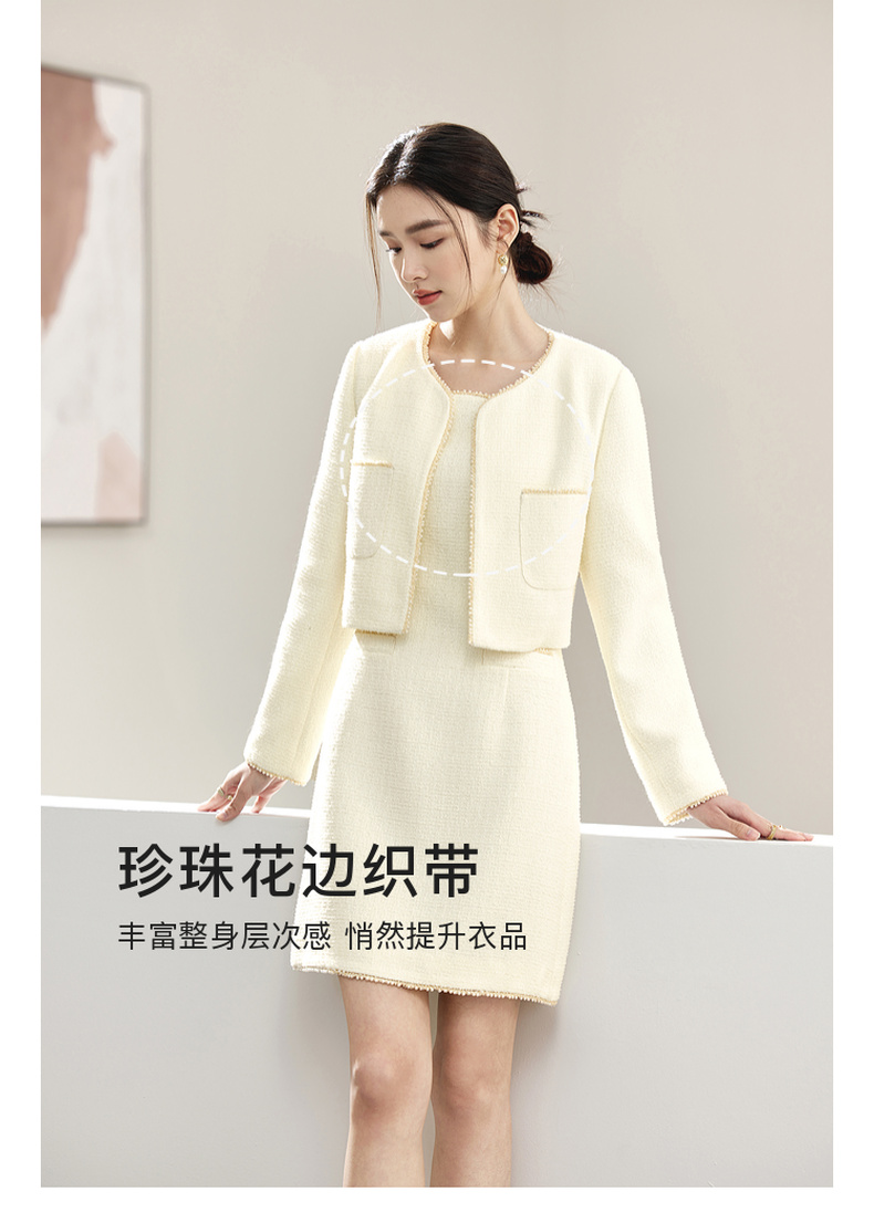 【内购】珍珠花边织带圆领小香风外套短款直筒吊带连衣裙洋气套装-153ZC3241X
