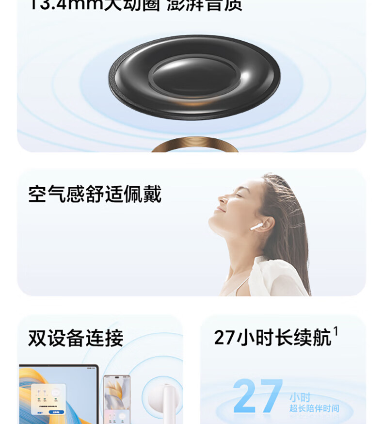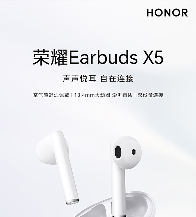 荣耀Earbuds X5 真无线蓝牙耳机 半入耳通话降噪 超大动圈澎湃低音