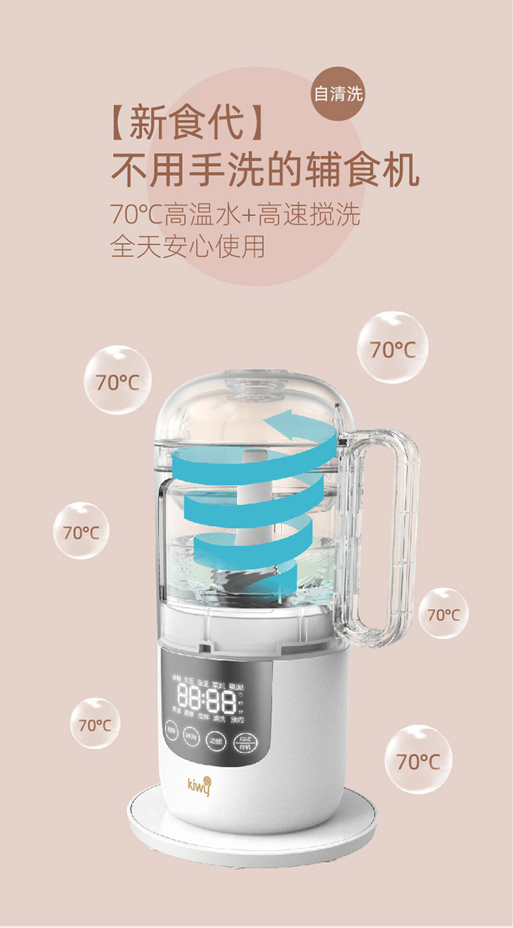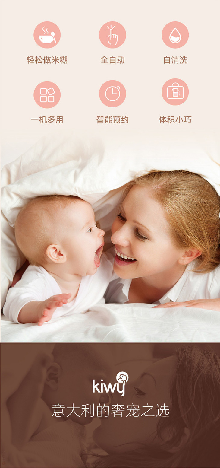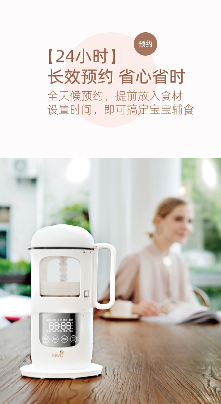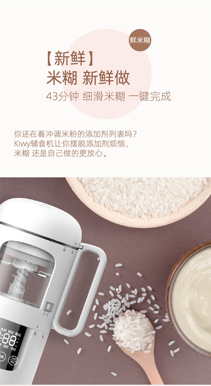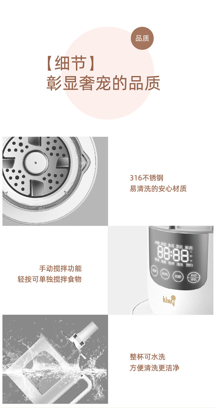 kiwy婴儿辅食机/自动米糊机/多功能料理机蒸煮搅拌快捷菜单双层防烫两色可选