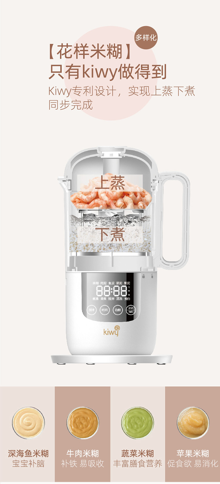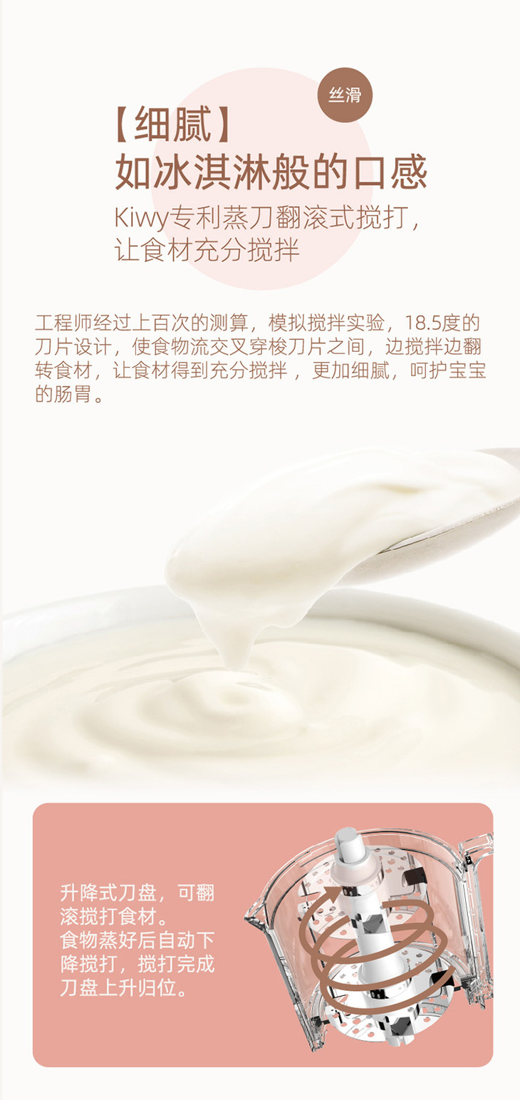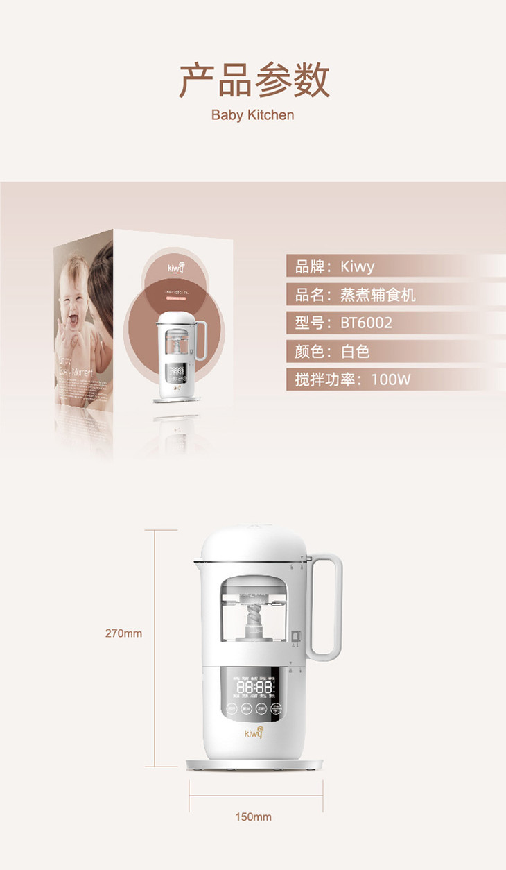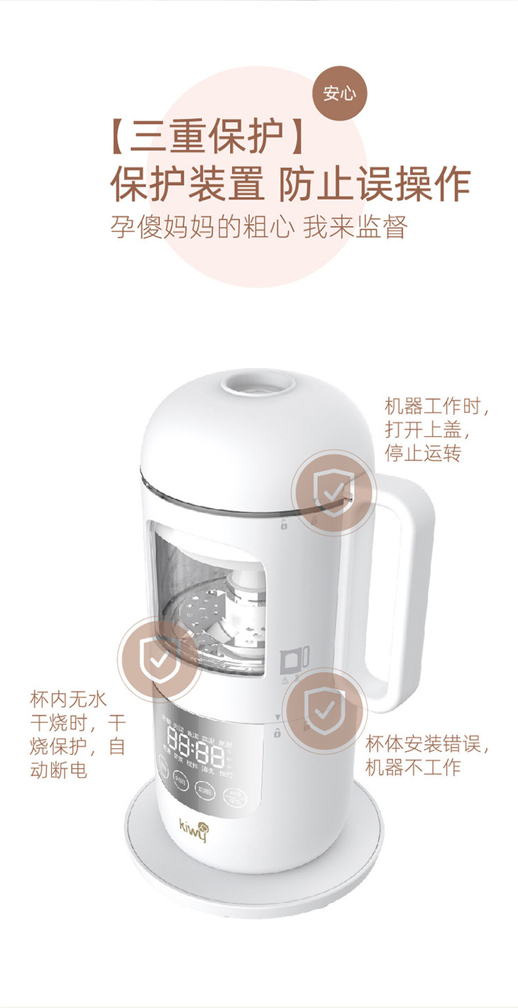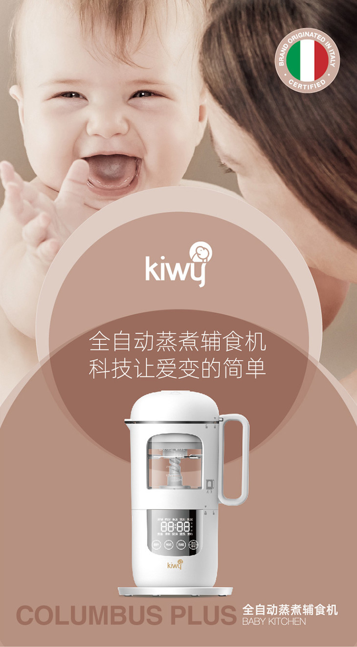 kiwy婴儿辅食机/自动米糊机/多功能料理机蒸煮搅拌快捷菜单双层防烫两色可选