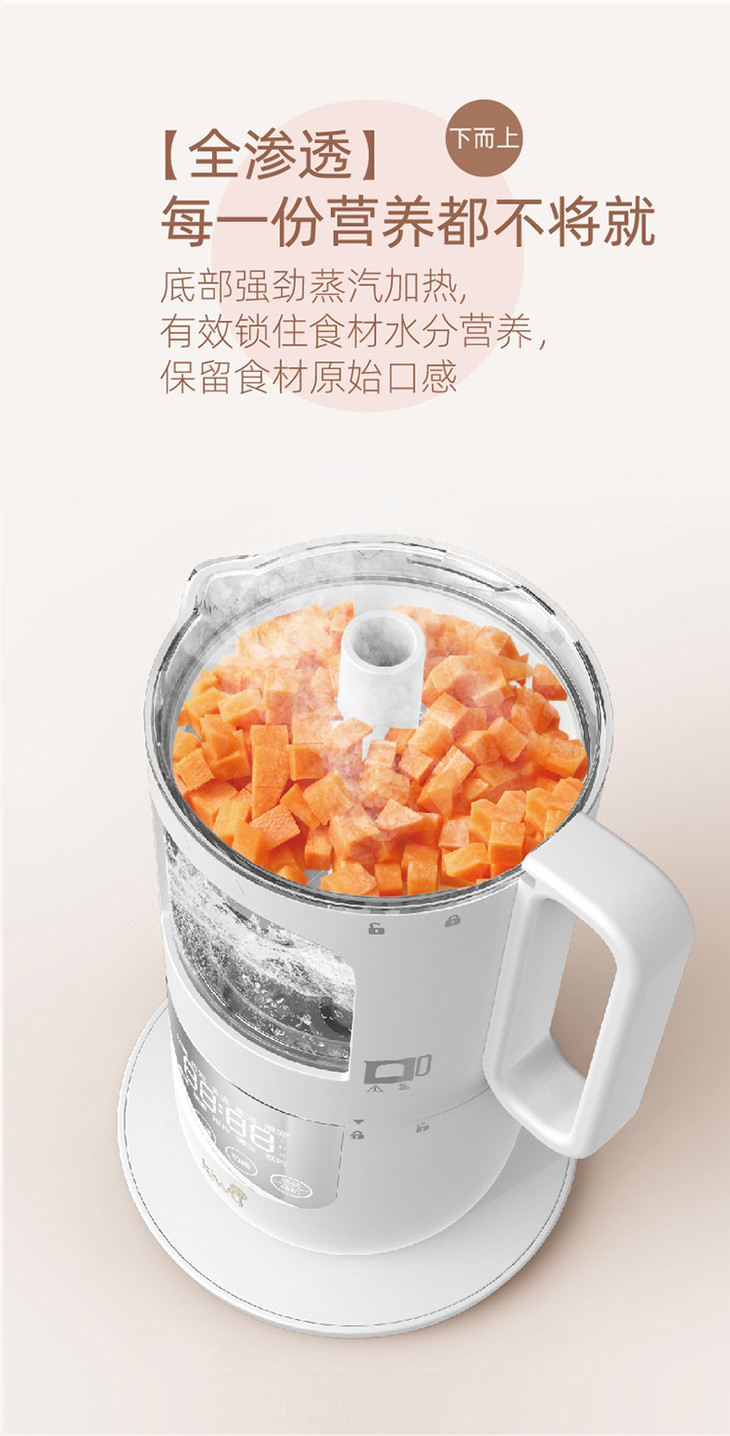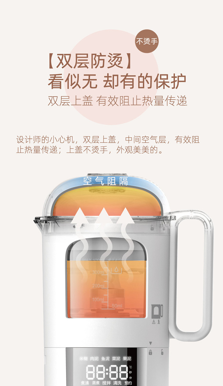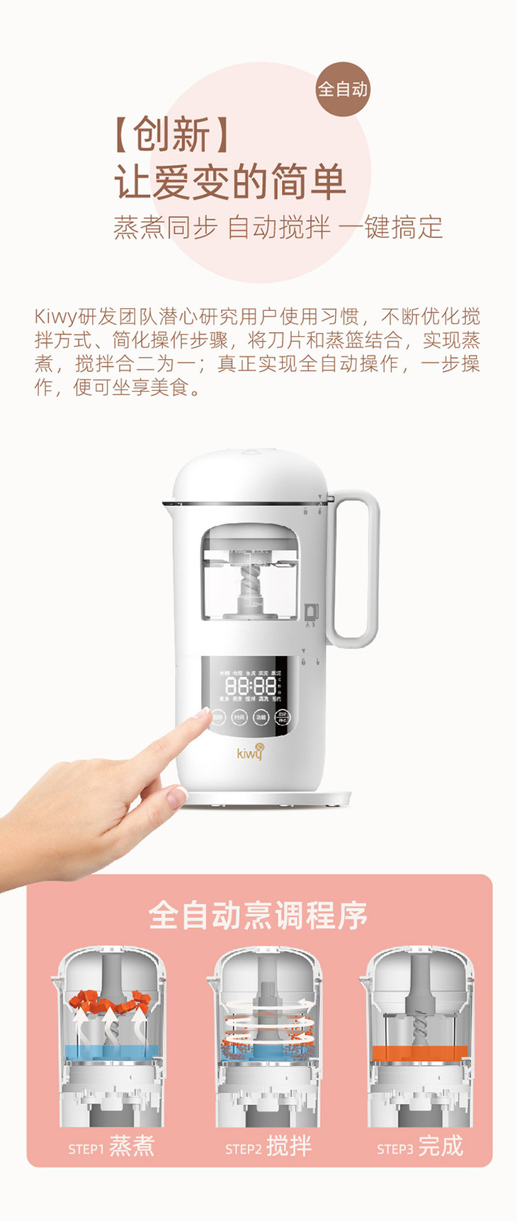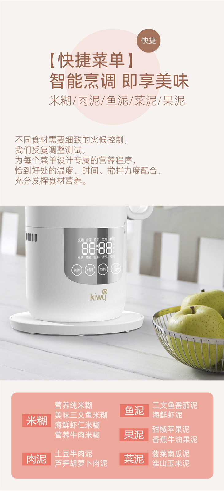 kiwy婴儿辅食机/自动米糊机/多功能料理机蒸煮搅拌快捷菜单双层防烫两色可选