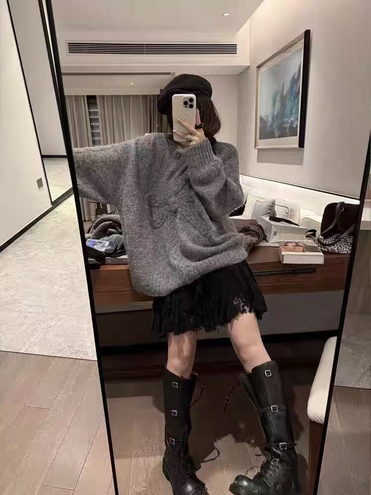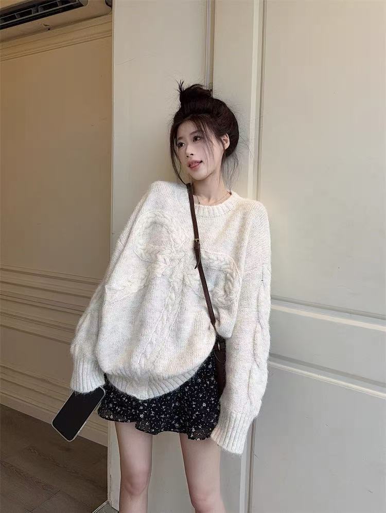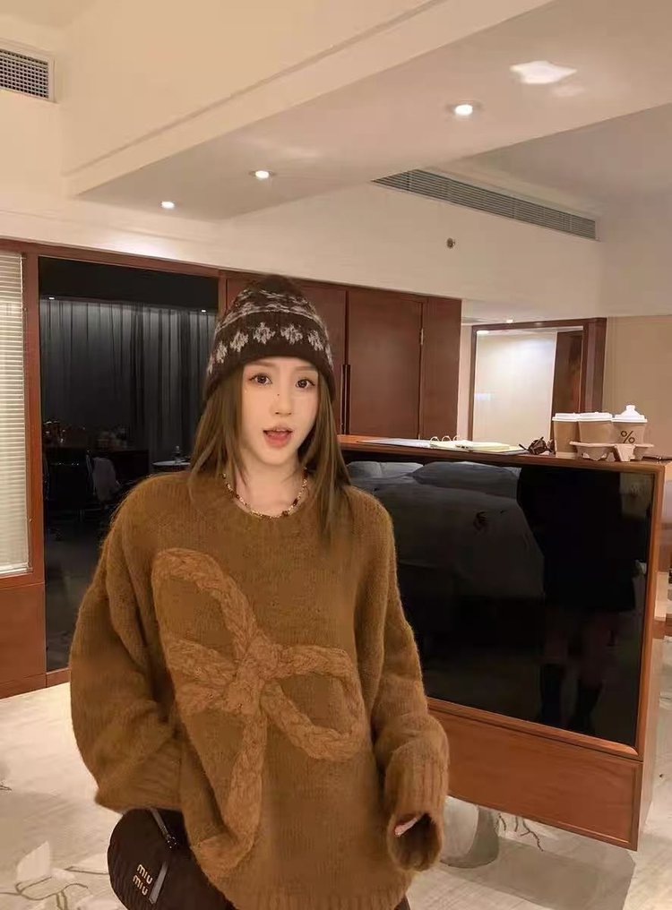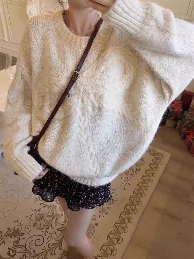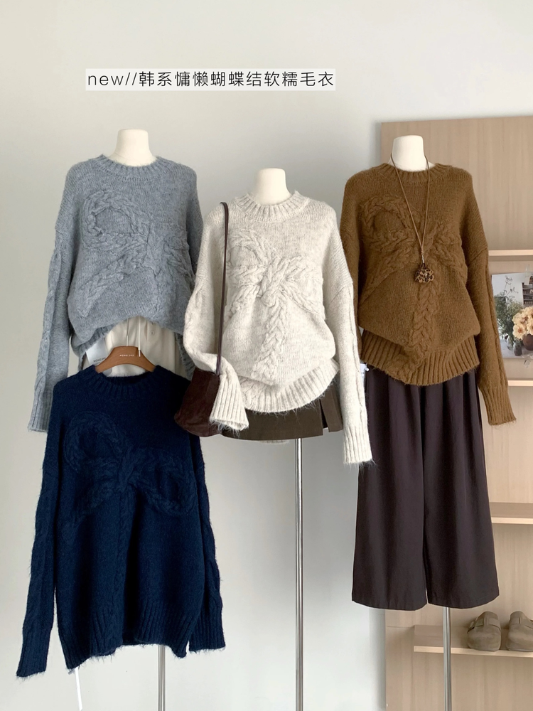 韩系慵懒立体麻花蝴蝶结样衣毛衣N1383★