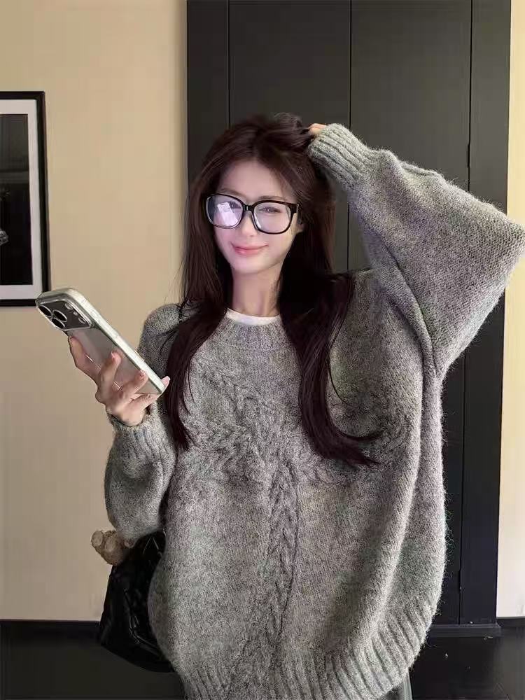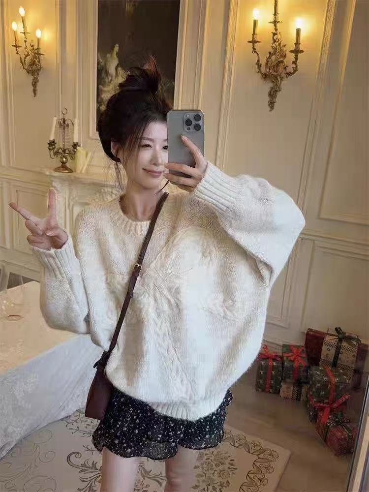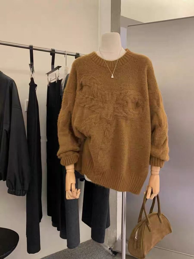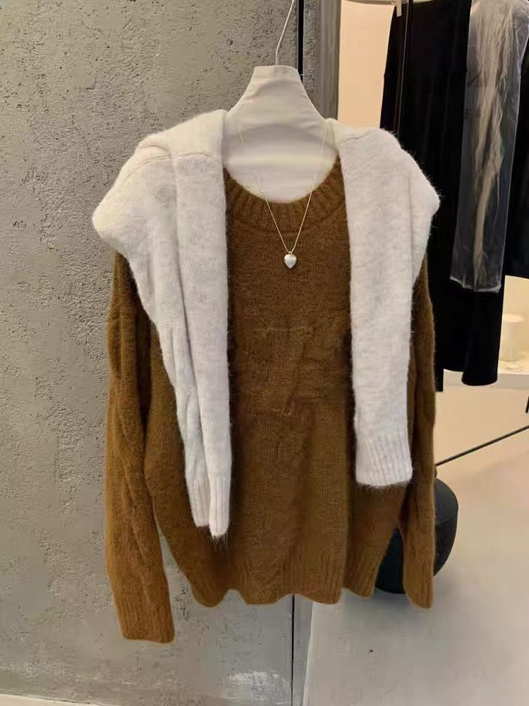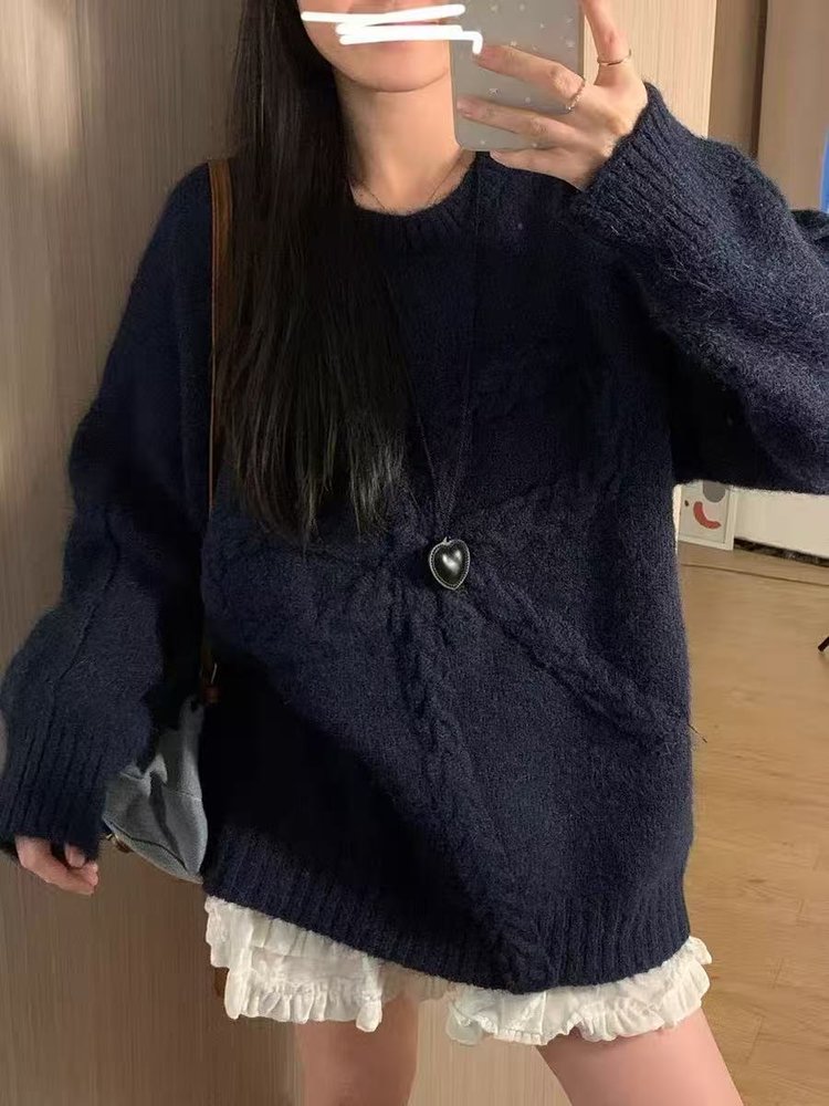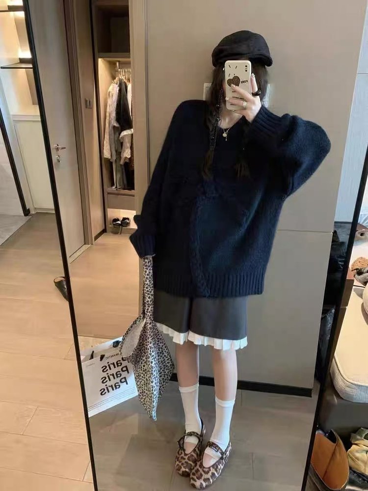 韩系慵懒立体麻花蝴蝶结样衣毛衣N1383★