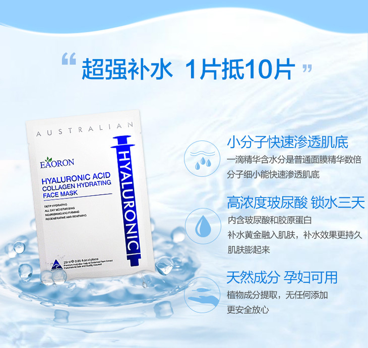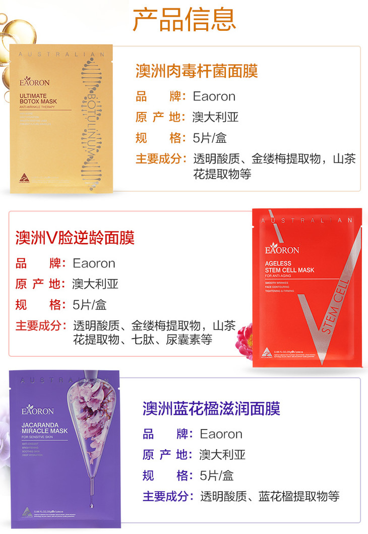 【现货】澳洲Eaoron水光针黑白面膜胶原蛋白玻尿酸紫红金深度补水收缩毛孔