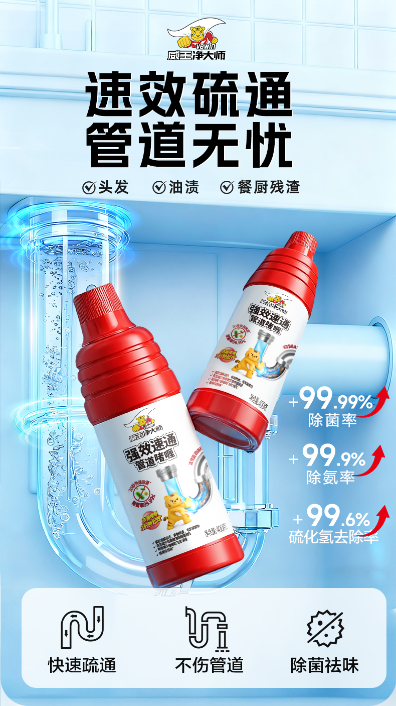 威王强效速通管道啫喱400g 3分钟速通 强力溶解 厕所马桶下水道