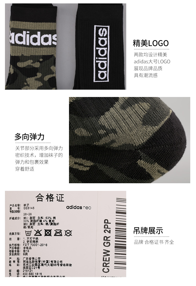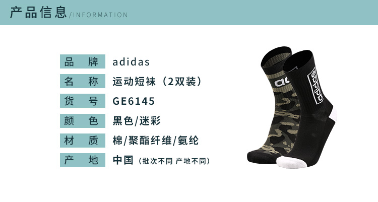 ADIDAS/阿迪达斯 CREW GR 2PP 2双装运动袜GE6145