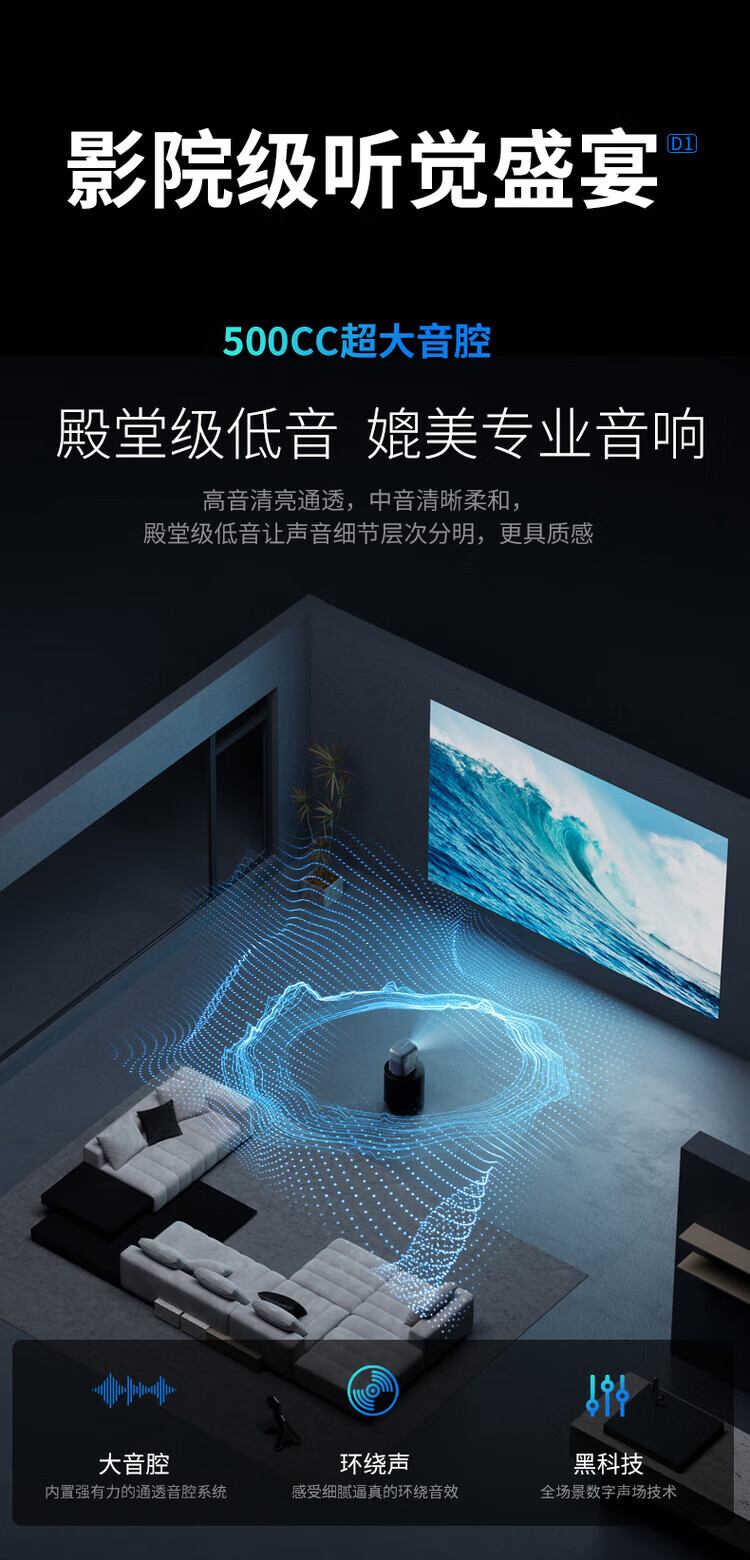 微果(VIMGO)D1投影仪家用 高清家庭影院 1080P 自动对焦 自动校正