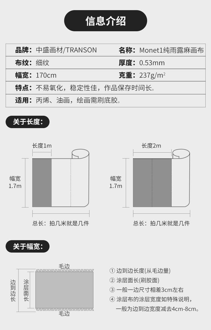 Monet1雨露麻亚麻细纹坯布人物表现主义油画布 幅宽170cm