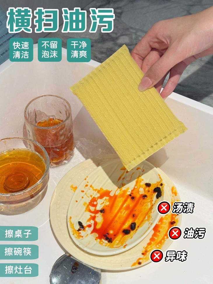 ✅去污摩擦面给力 顽固焦渍 干硬油渍一擦就掉还不刮伤餐具厨具 ✅加厚海绵有韧性,随便折叠都能擦 水槽缝 灶台角这些死角也能清洁到 ✅吸水吸油能力强,擦完台面基本没水渍 油污一冲就干净,清洗超方便 ✅省洗洁精小能手 挤一点就出泡沫🫧 ✅ 功能超全,餐具 厨具 台面 家电都能擦 还可以去污抛光 厨房清洁全搞定