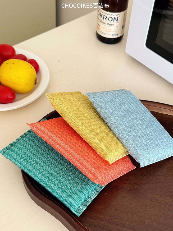 不伤锅,涂层锅奶锅铁锅放心用 很精致,手掌大小,非常好拿 耐用,不掉渣,一块可以用很久! 这些颜色也太治愈了吧 赶紧扔掉家里掉渣的海绵吧,换它!!!