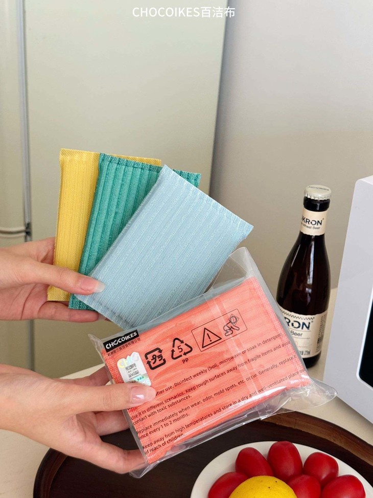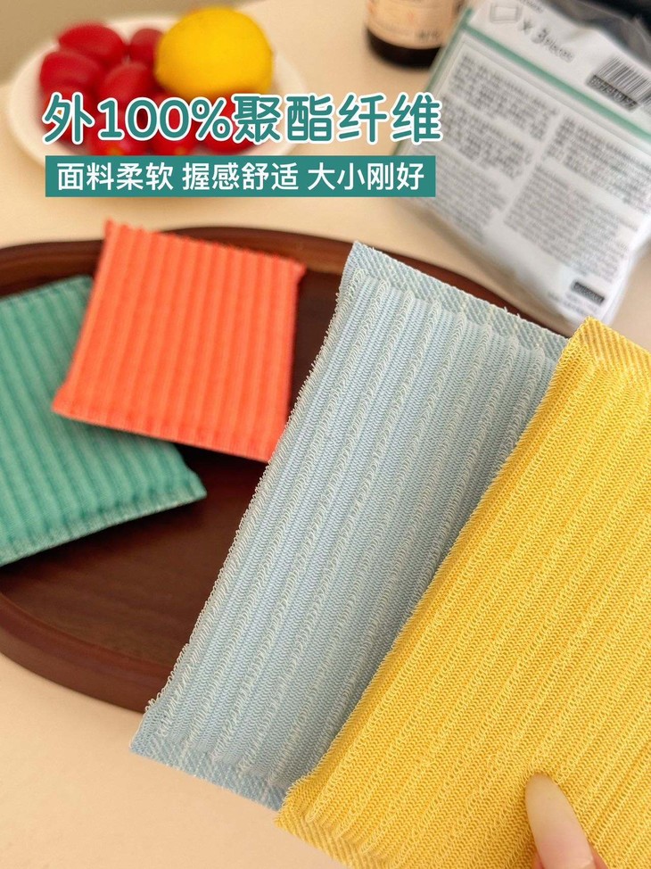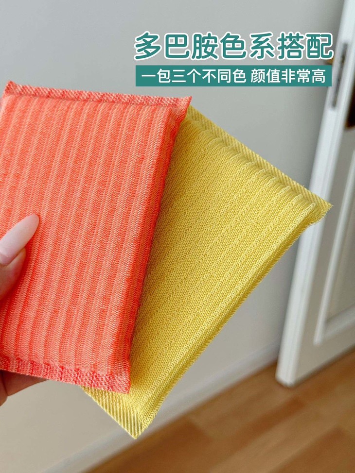 ✅超强去污力 顽固油渍一擦就掉 ✅加厚材质 反复揉搓也不易变形 从此告别厨房清洁烦恼 一包有三个 用完直接扔也不肉疼 用来擦灶台、洗碗、擦桌子都超合适