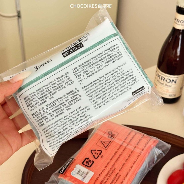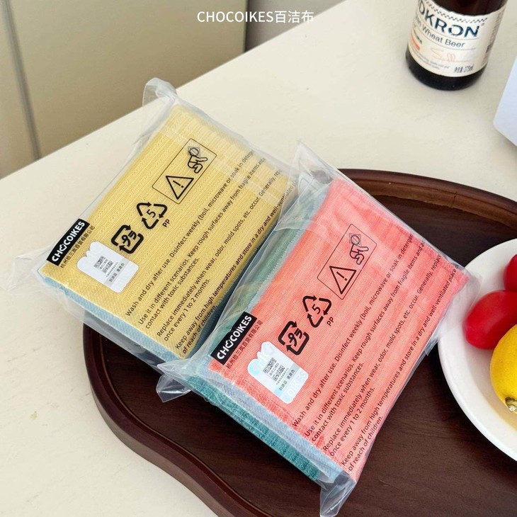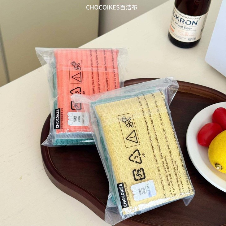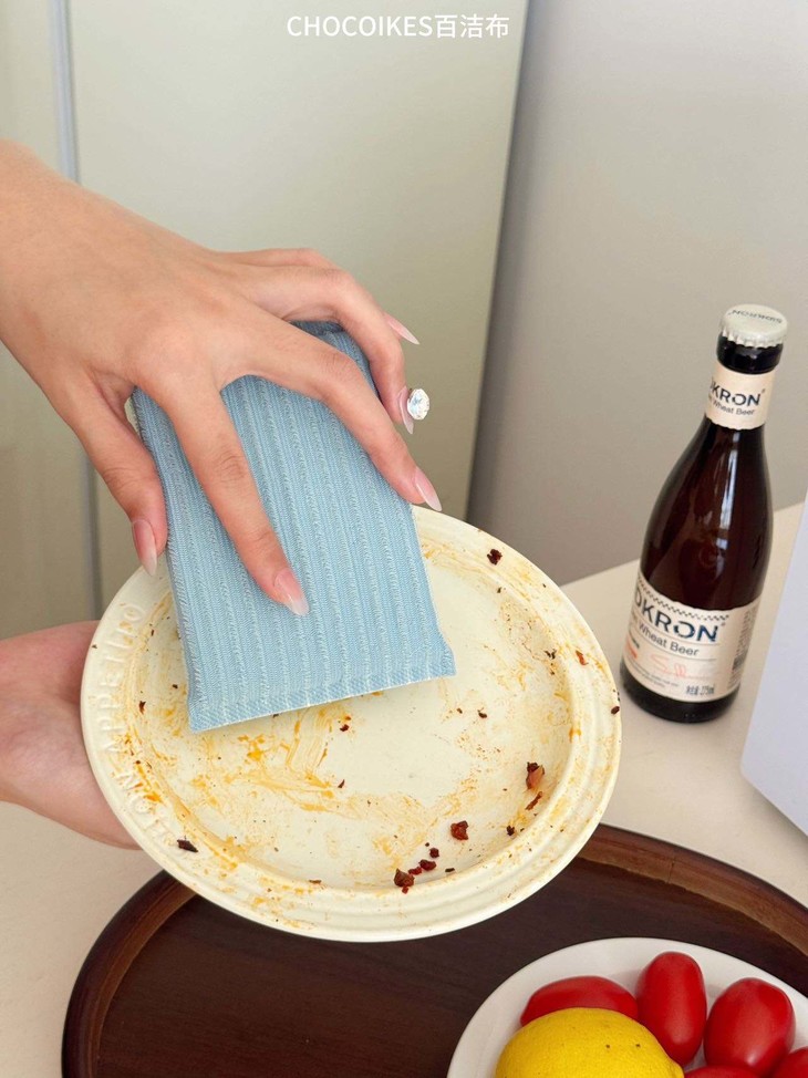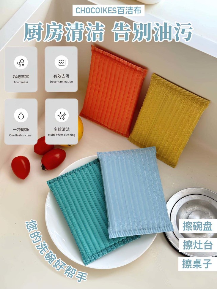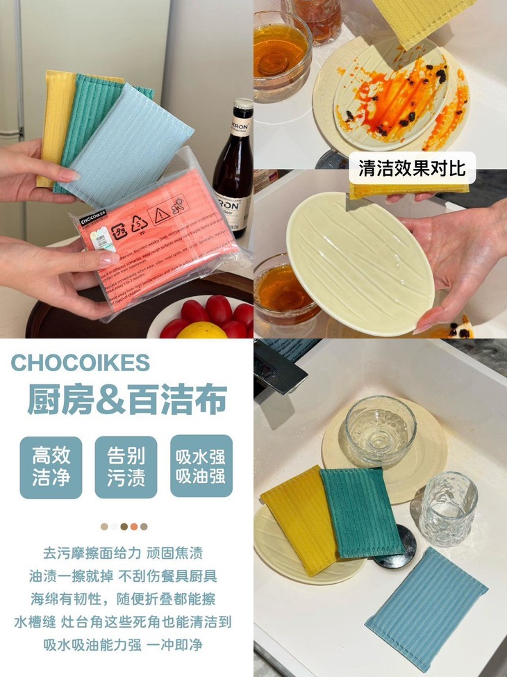 CHOCOIKES百洁布,宜家同款,亲水去油 聚酯纤维材质让去污效果翻倍 同时柔软不伤手,真是洗碗的好帮手! 而且它还特别耐用 洗碗刷锅都不在话下 一块就能搞定所有清洁工作!