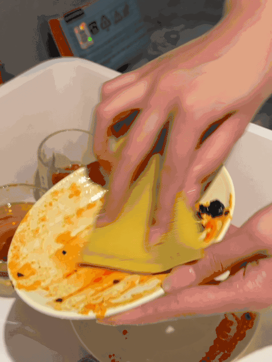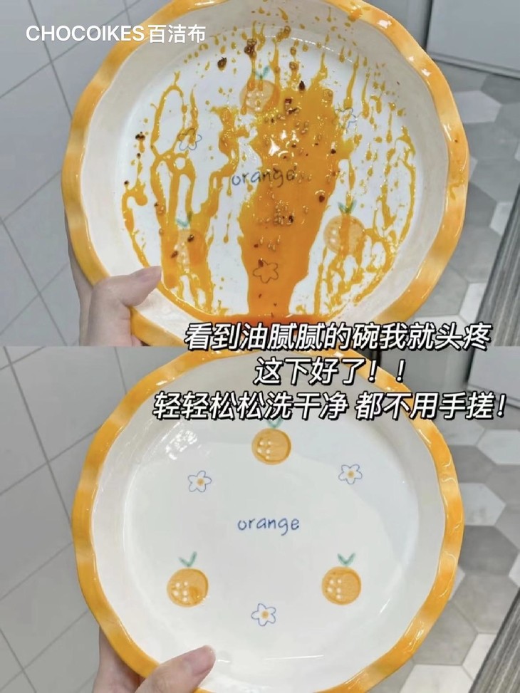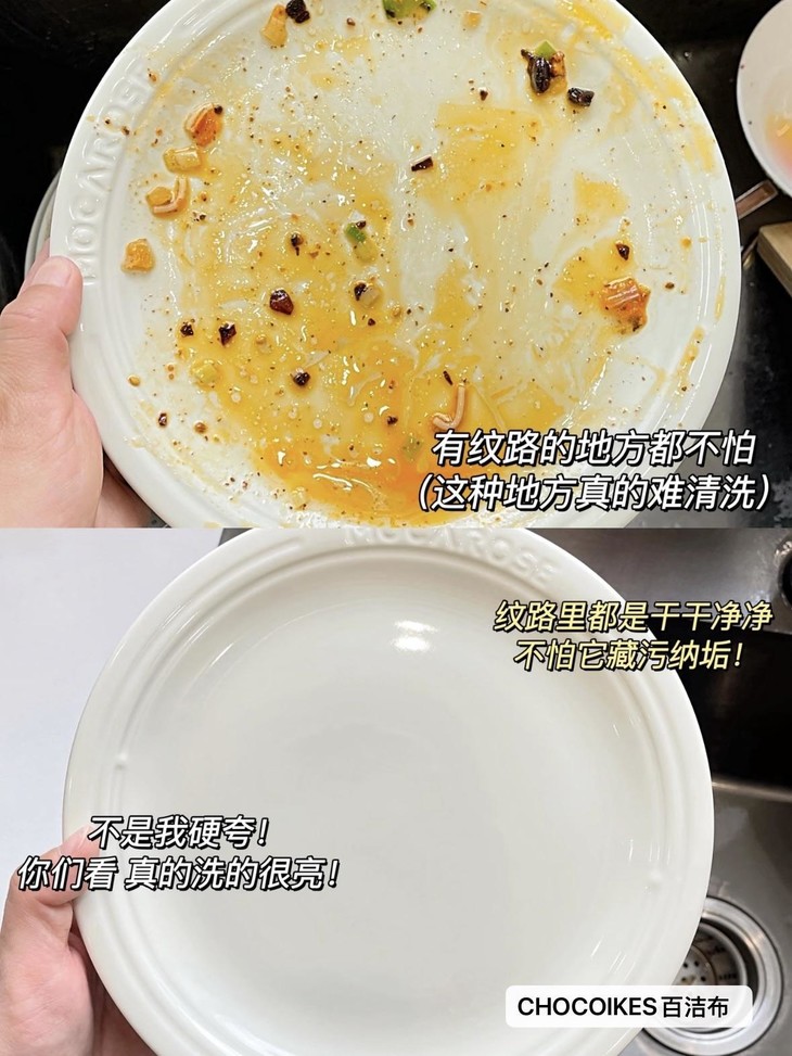 不管是里的陈年老油 还是碗上的黏腻污渍,擦几下就干净了 而且它泡沫超丰富 冲洗的时候也很方便 油污轻松冲走! 强烈推荐大家入手!