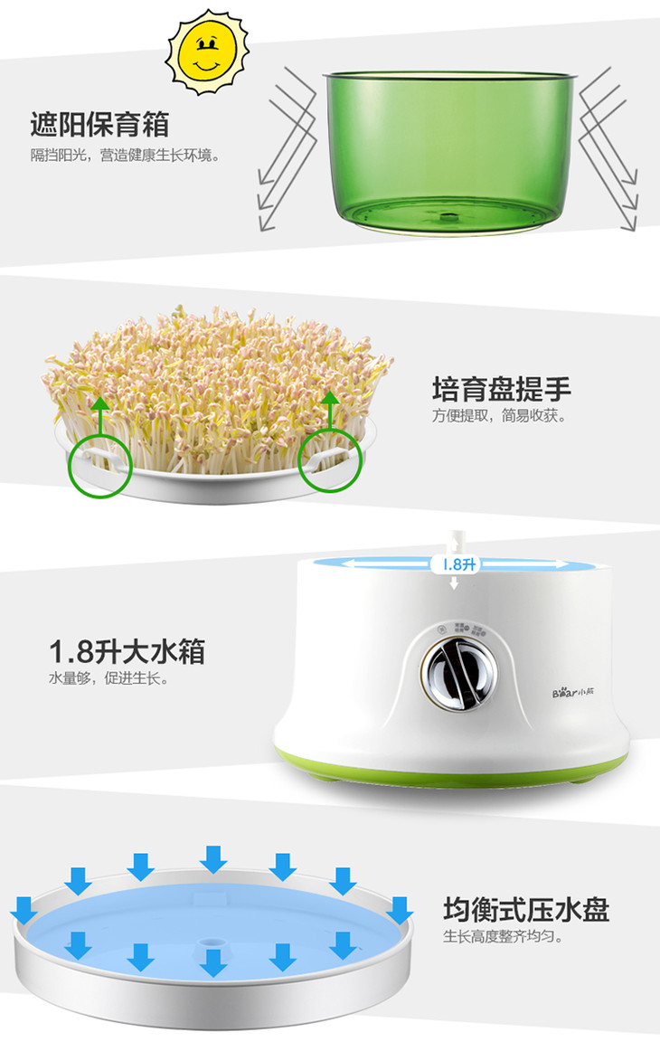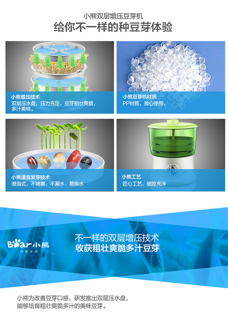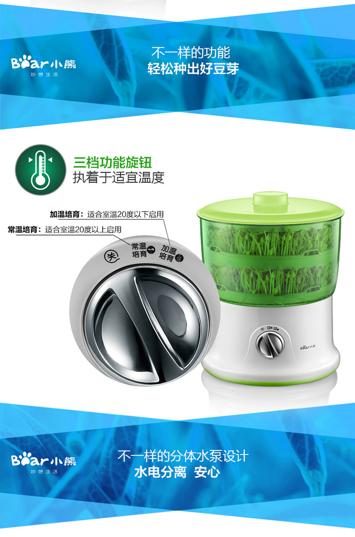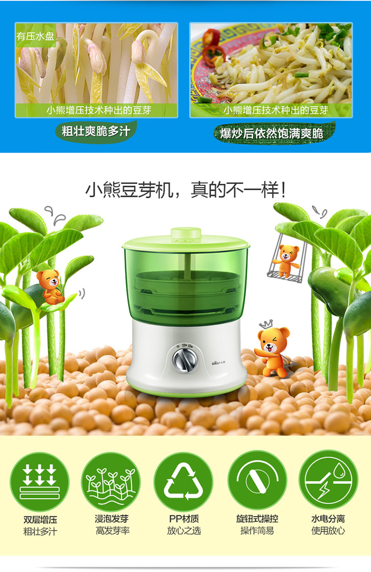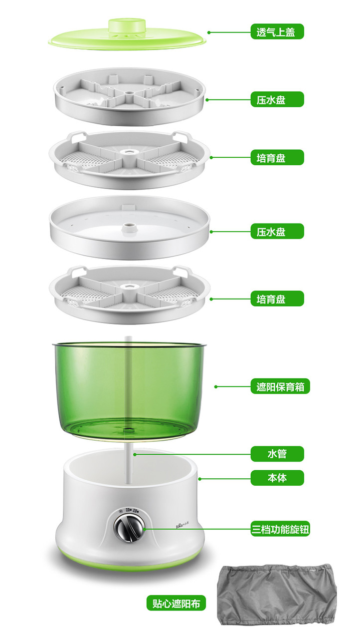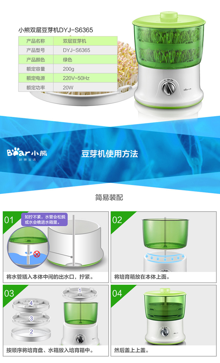 小熊(Bear)豆芽机 双层全自动洒水家用DYJ-S6365