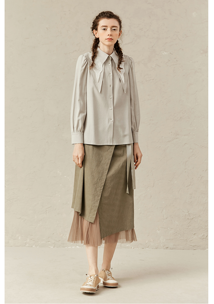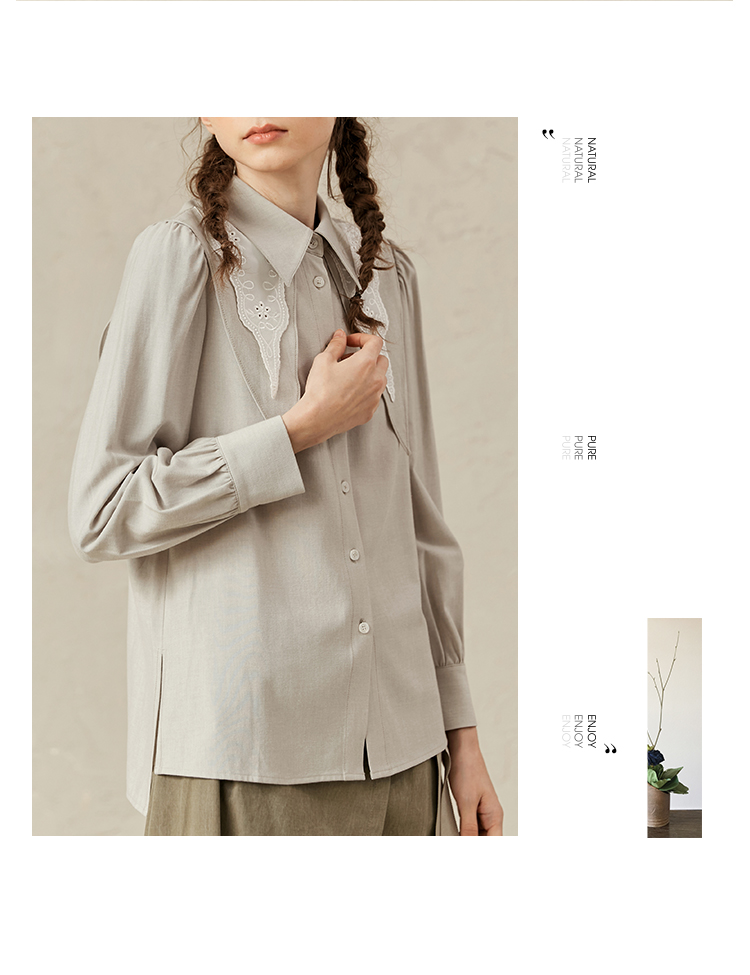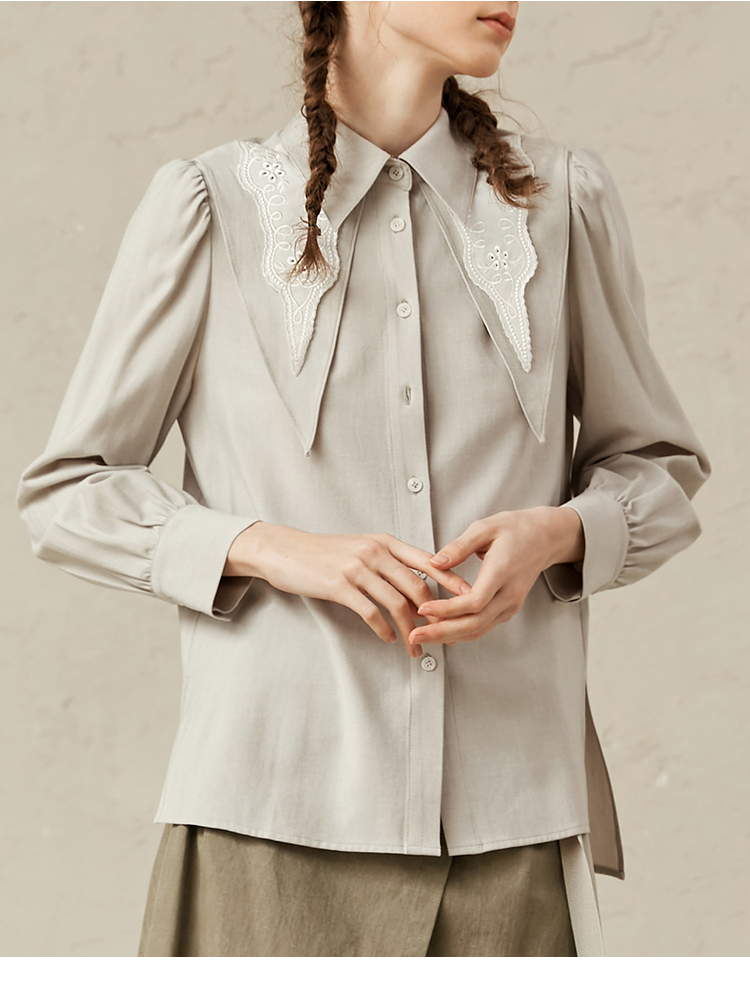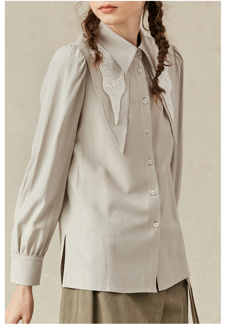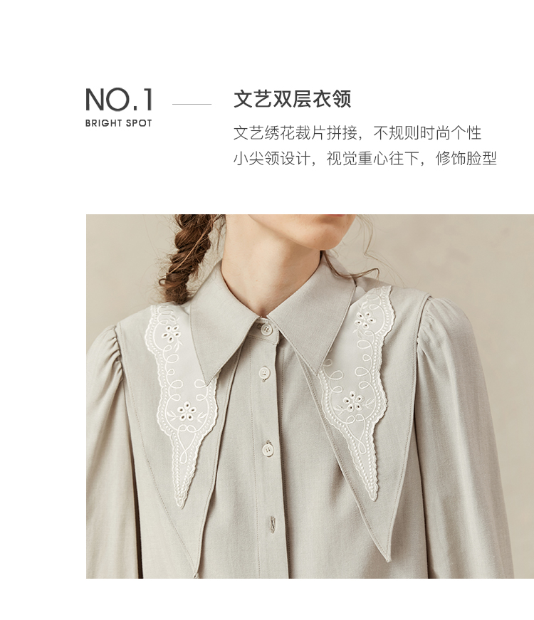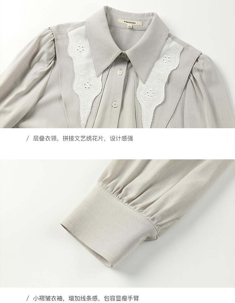 Famecoco范可儿尖领衬衫女款早春法式洋气衬衣F221BH004