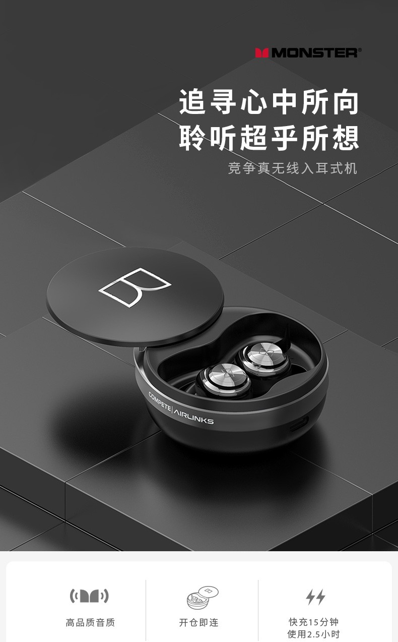 魔声(Monster) Compete AirLinks 竞争真无线蓝牙耳机魔音音乐运动游戏吃鸡耳机