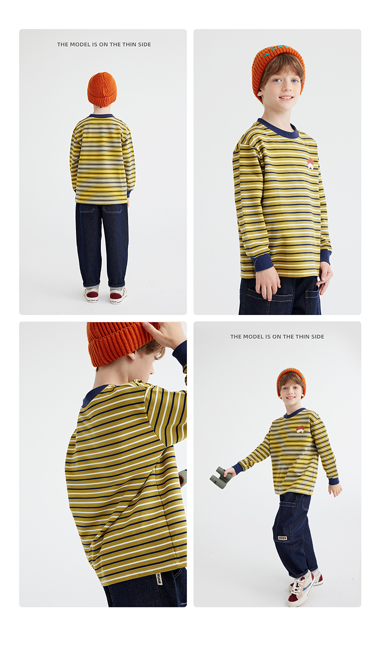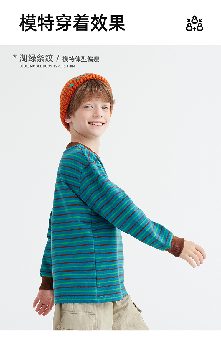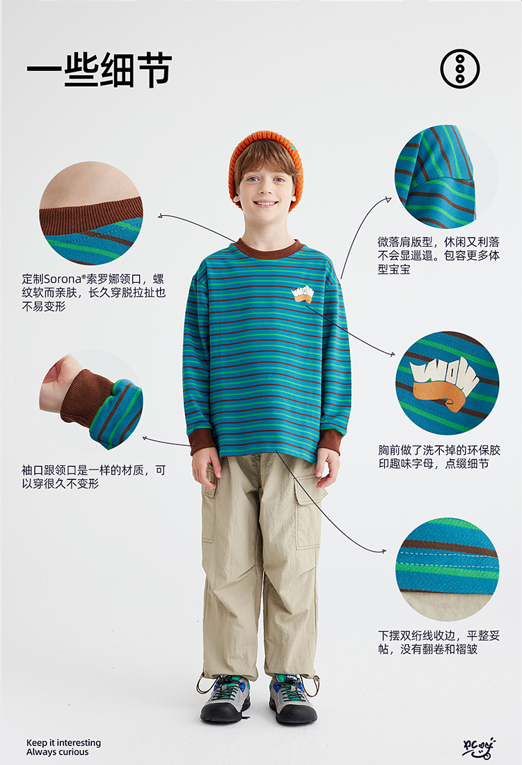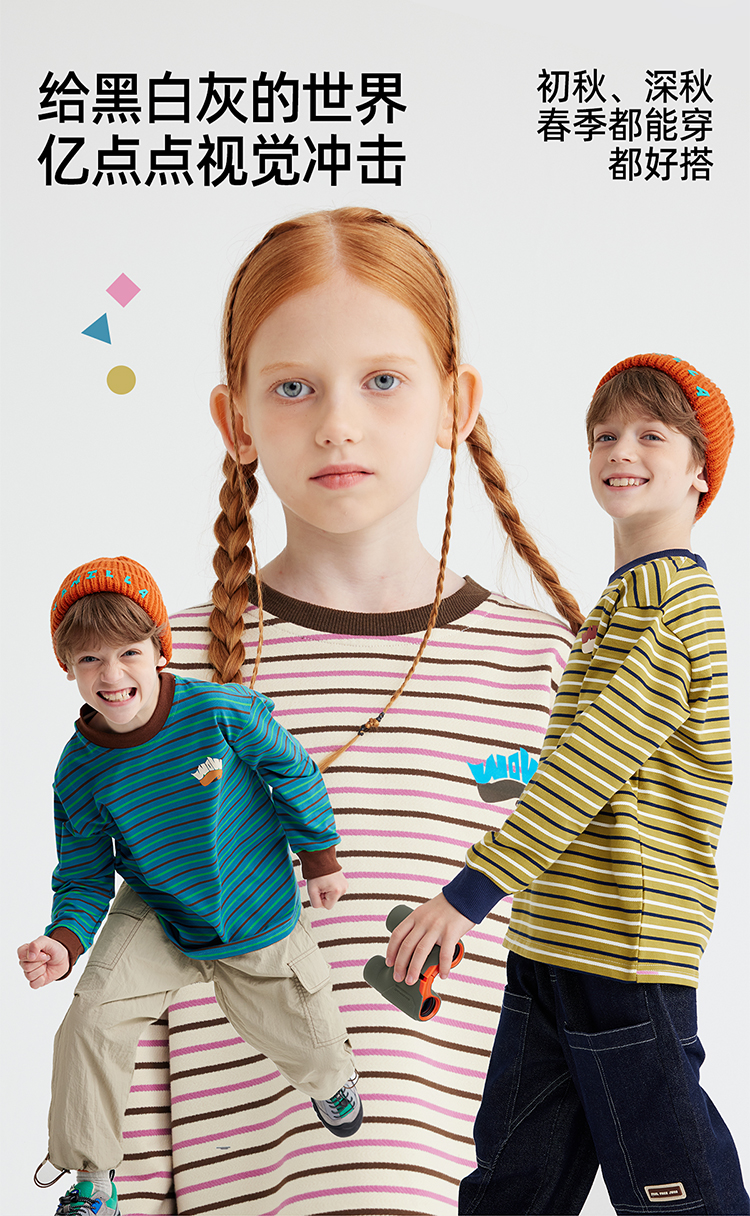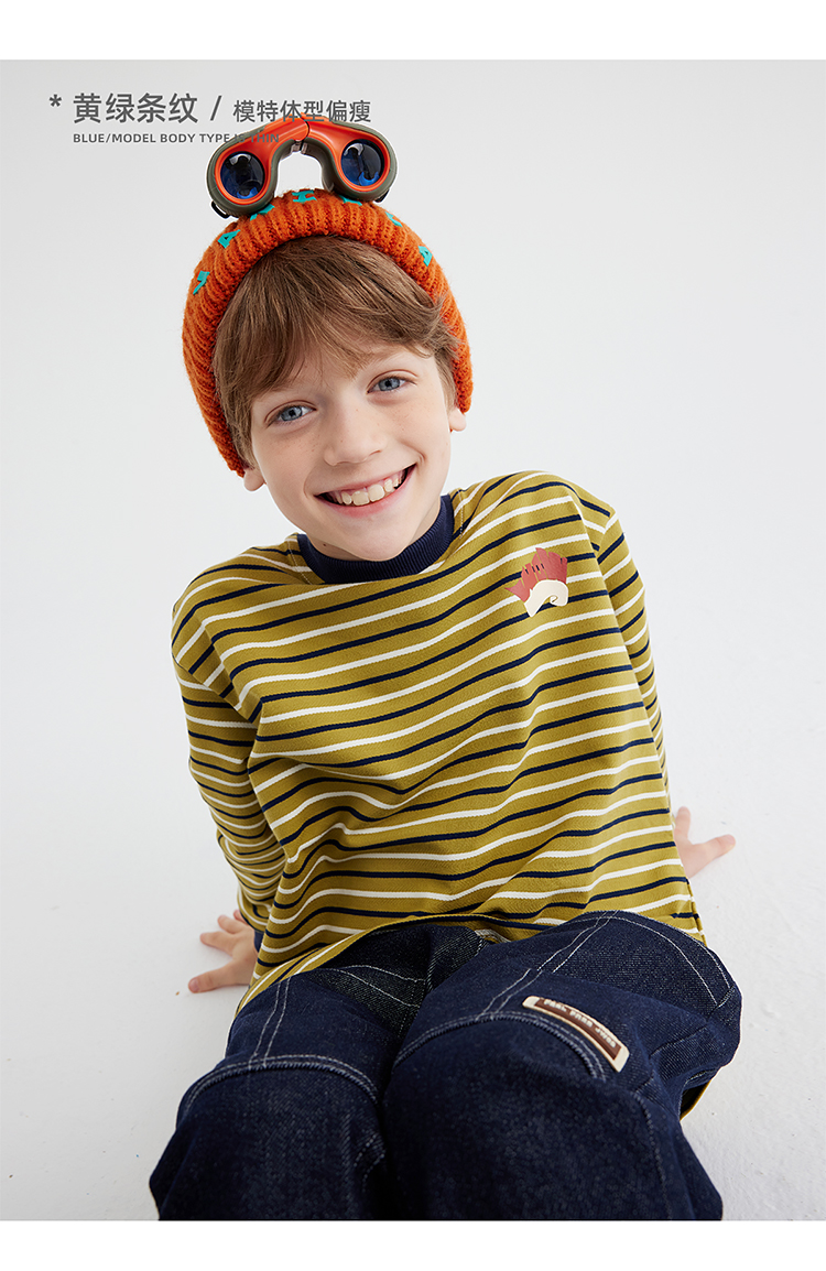 【“粒绒彩条”休闲长袖T恤】儿童趣味印花彩条T恤 PQTX2407