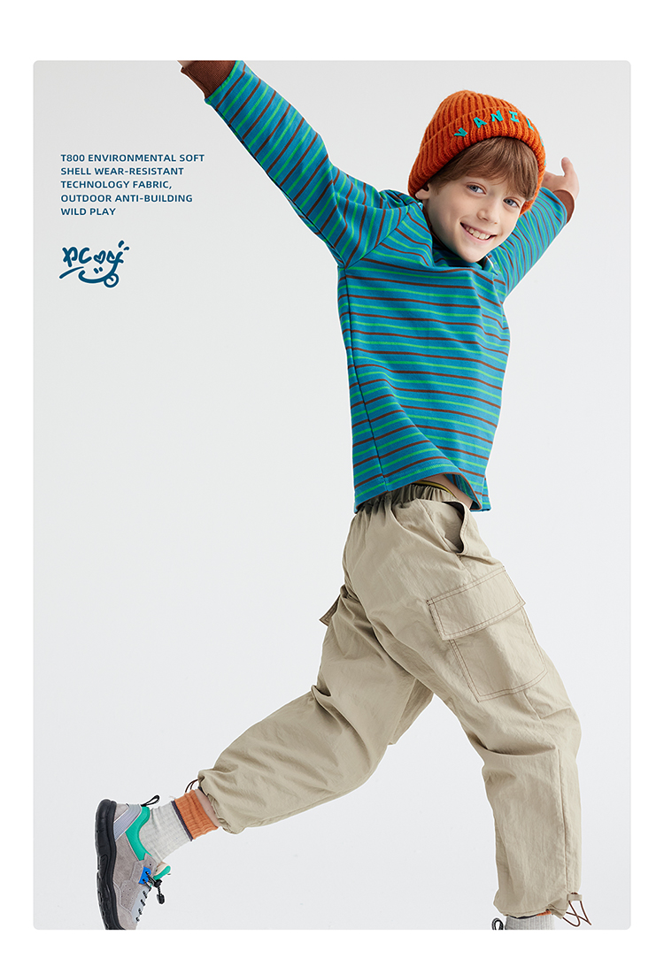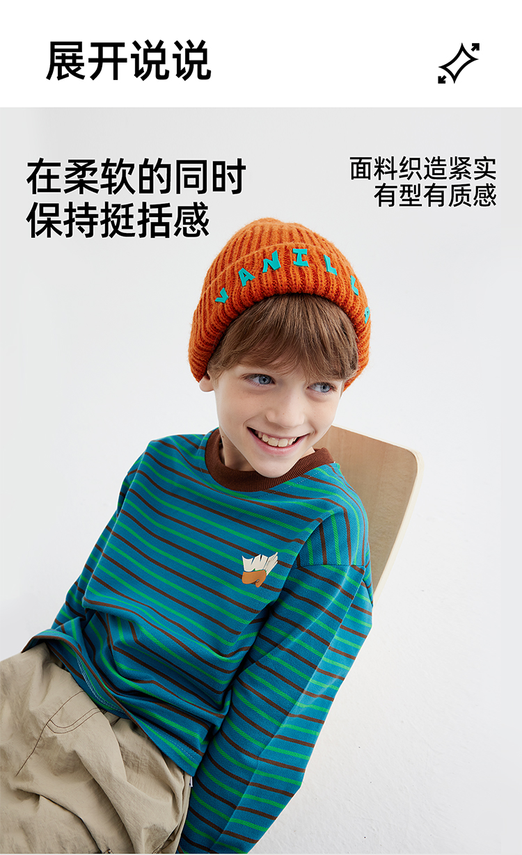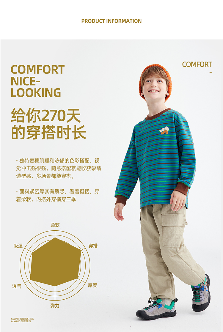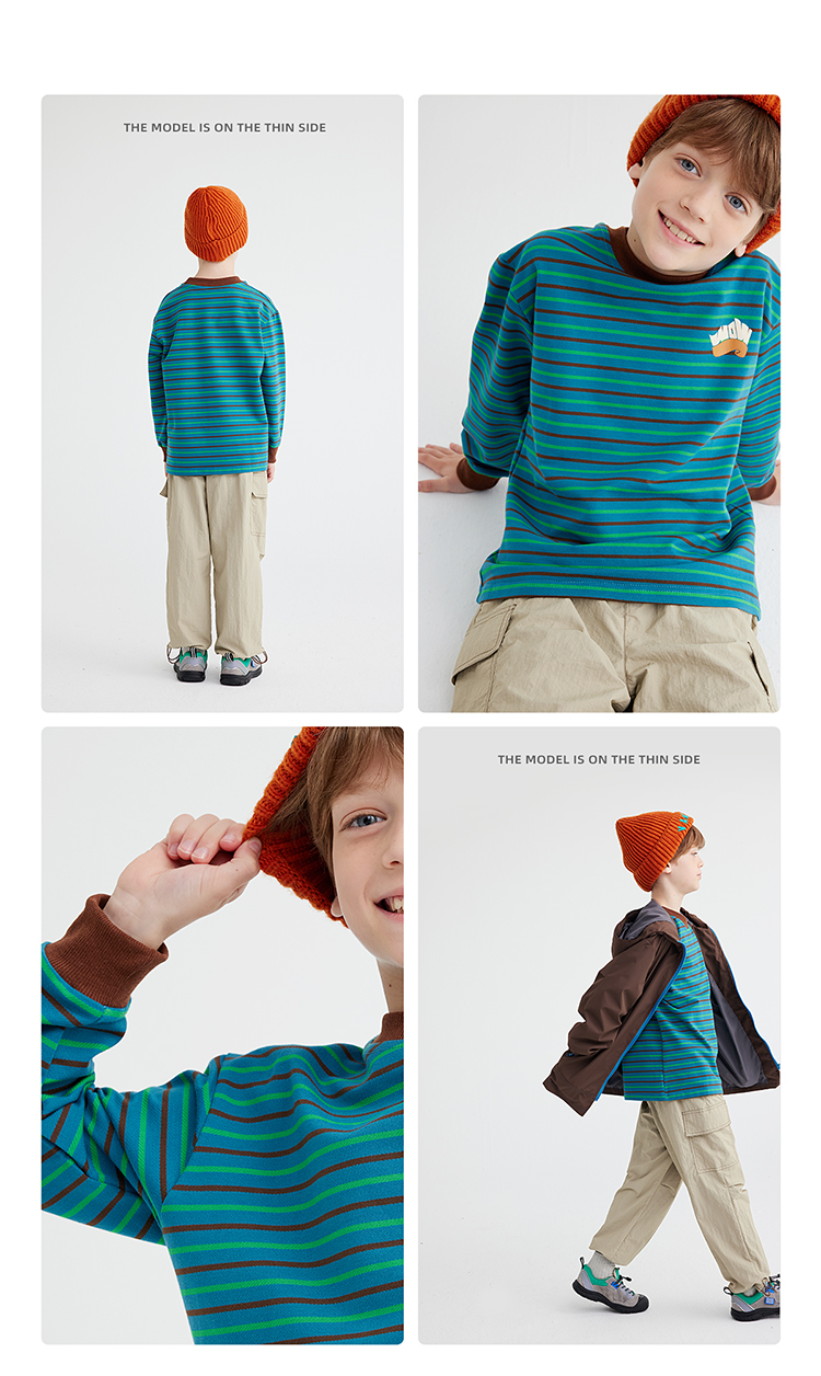 【“粒绒彩条”休闲长袖T恤】儿童趣味印花彩条T恤 PQTX2407