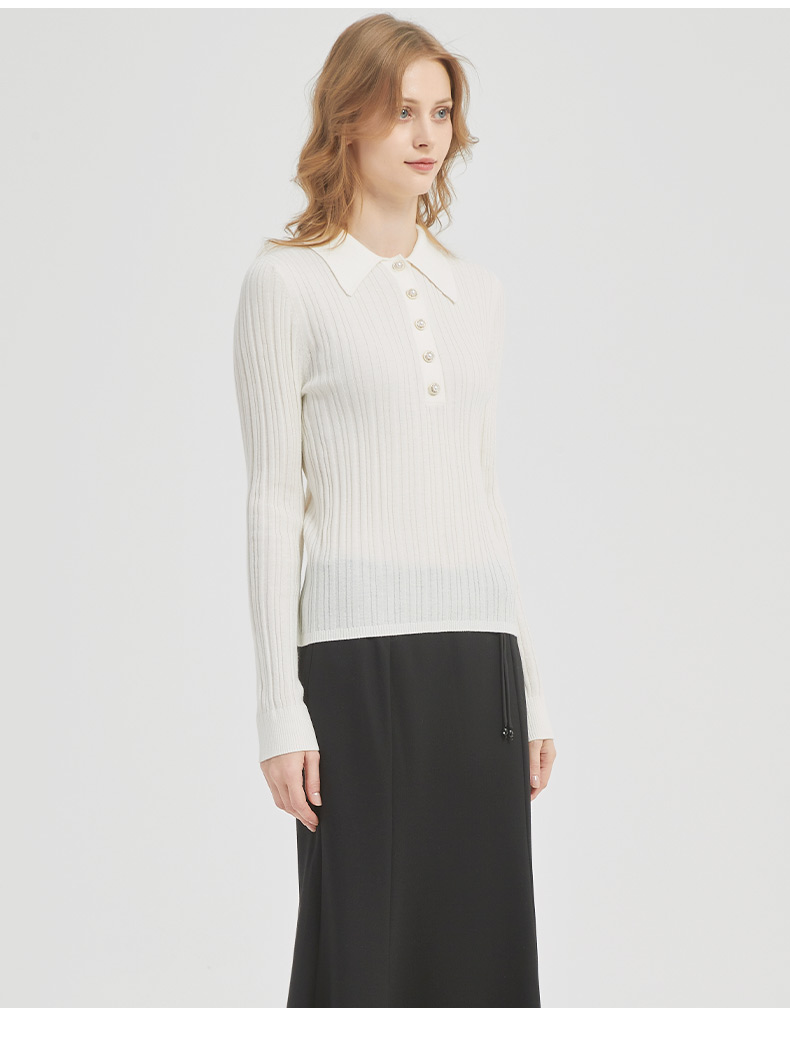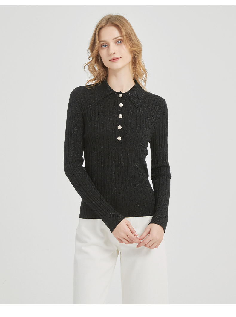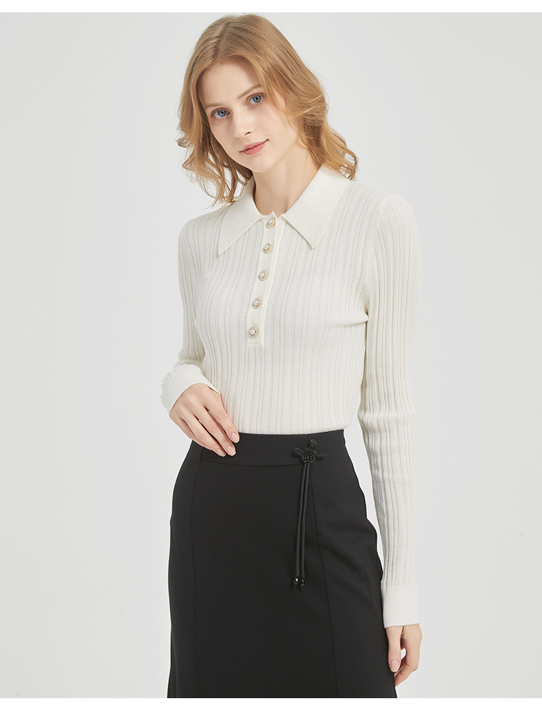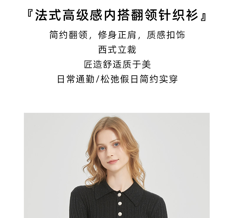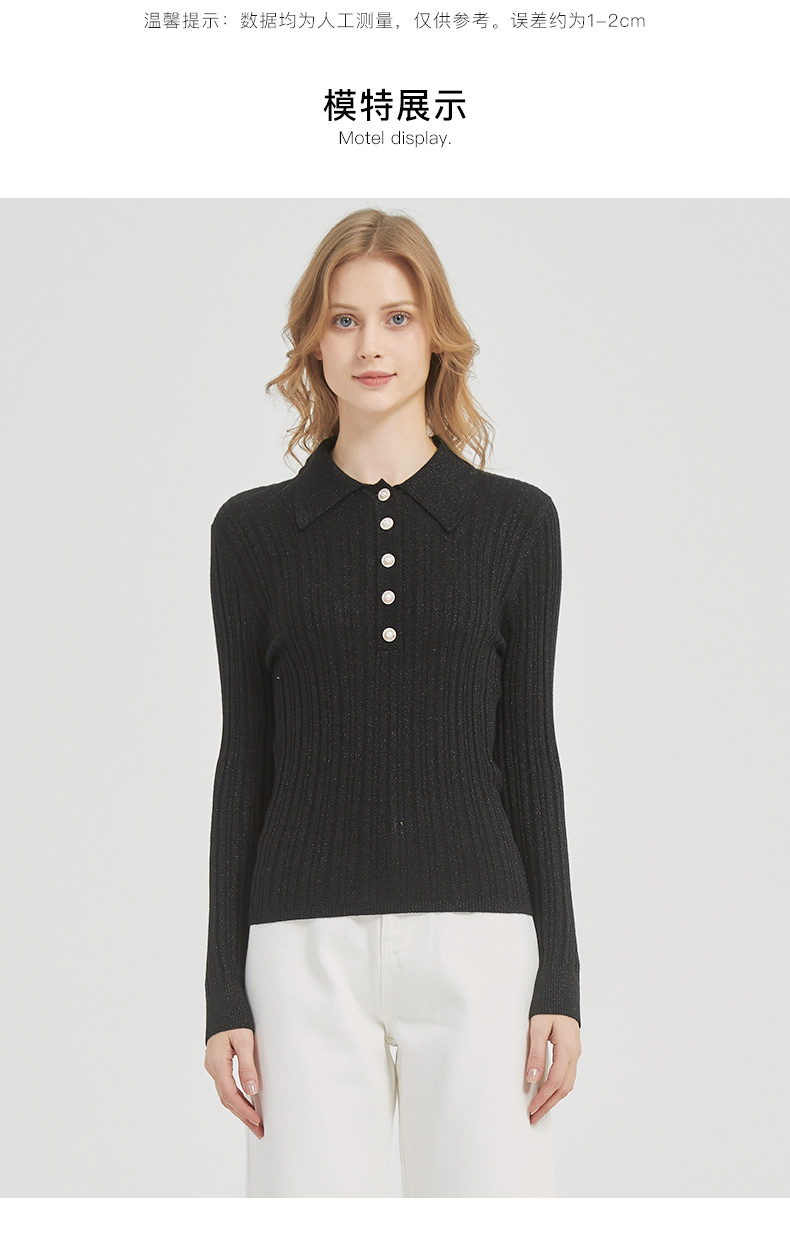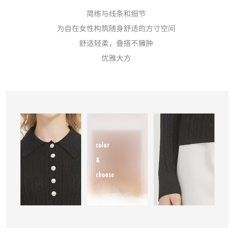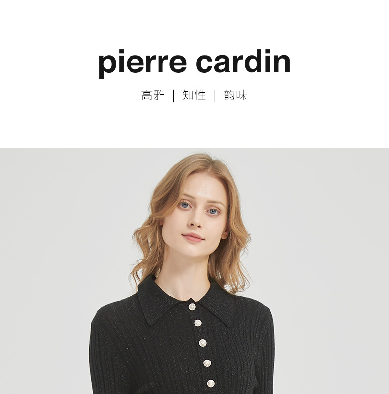 皮尔卡丹女装都市通勤翻领修身双色针织衫C51KP009