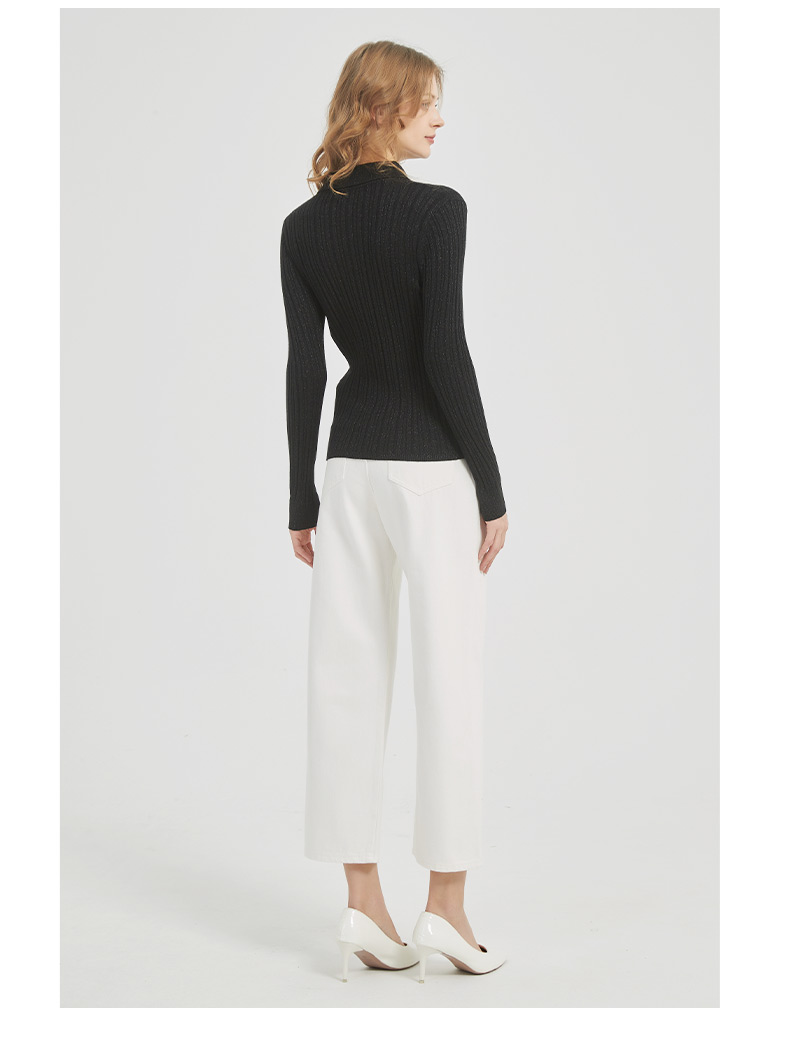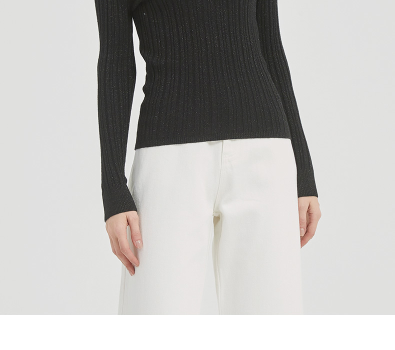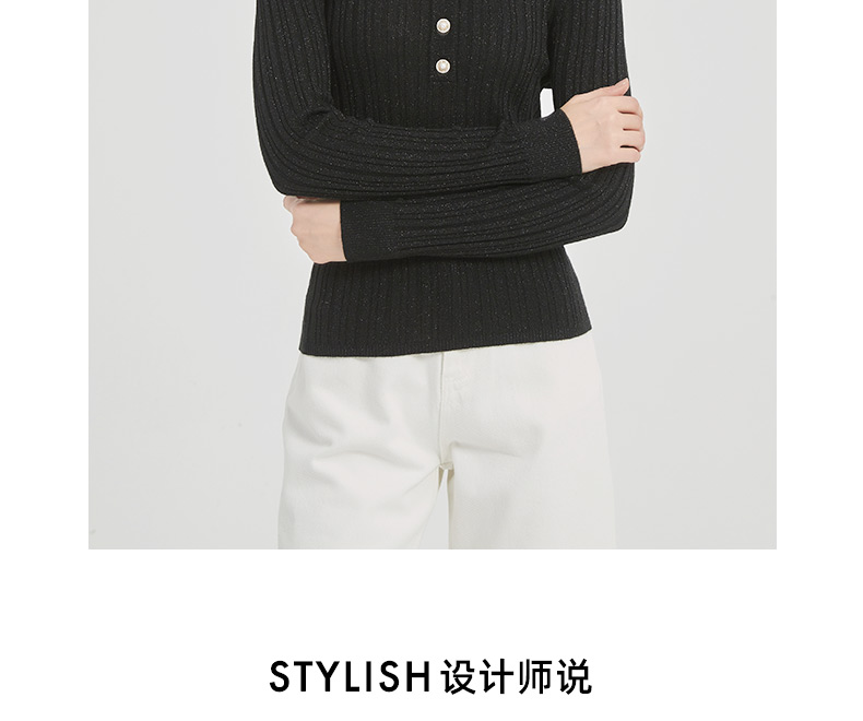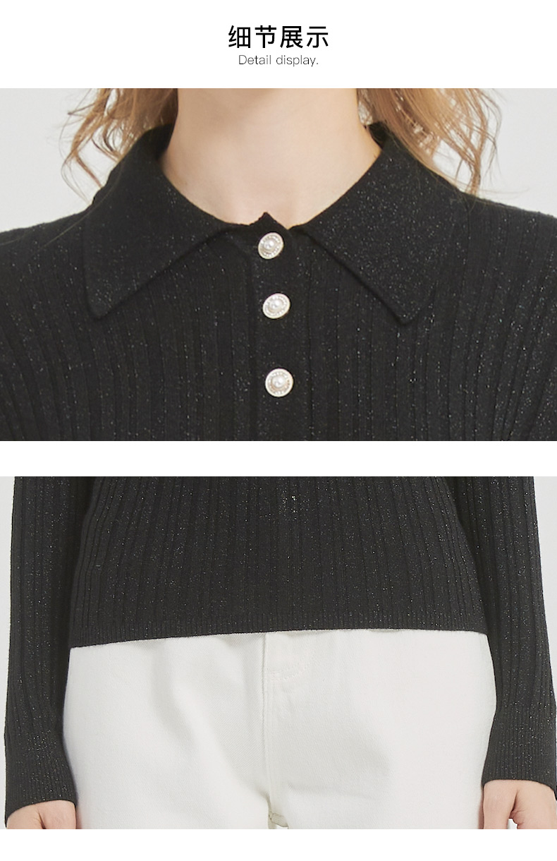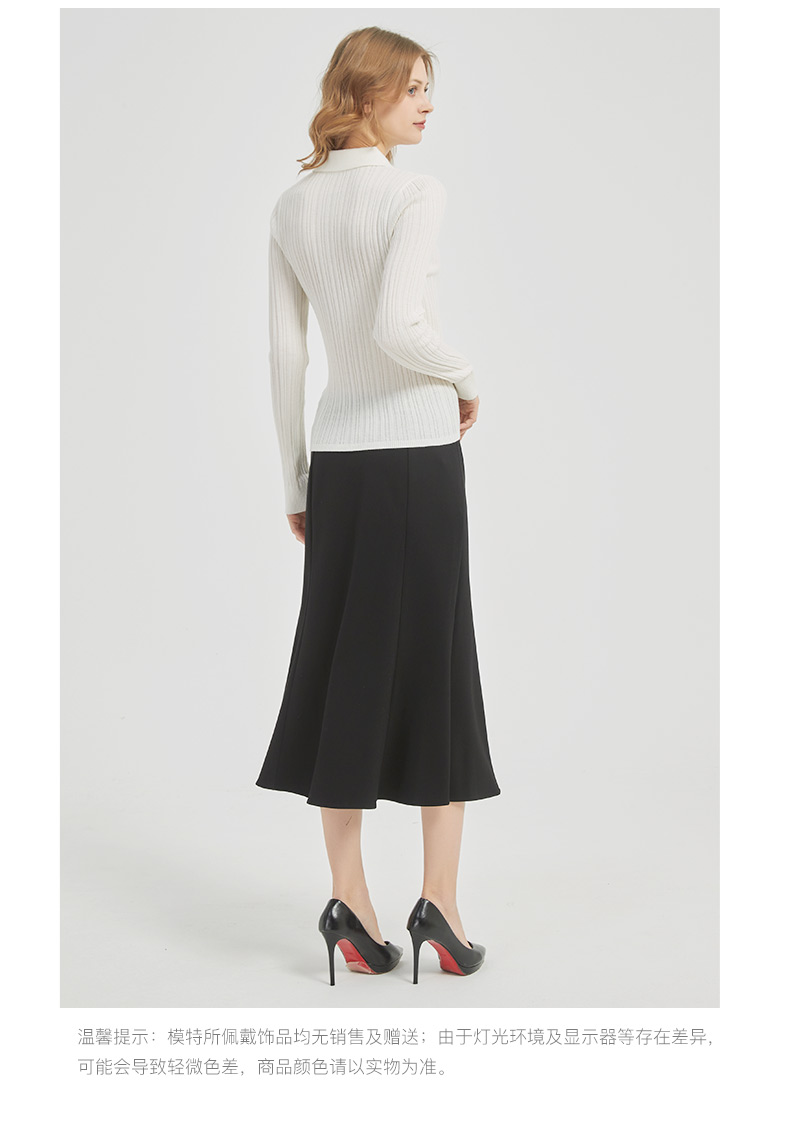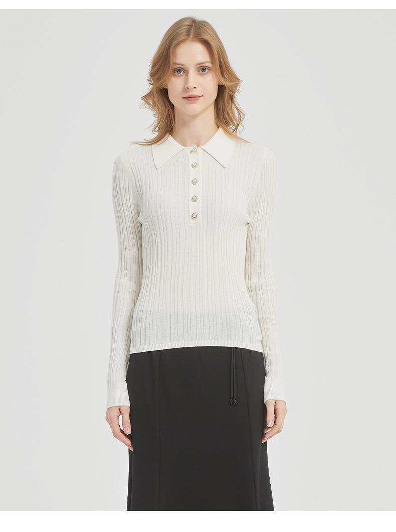 皮尔卡丹女装都市通勤翻领修身双色针织衫C51KP009