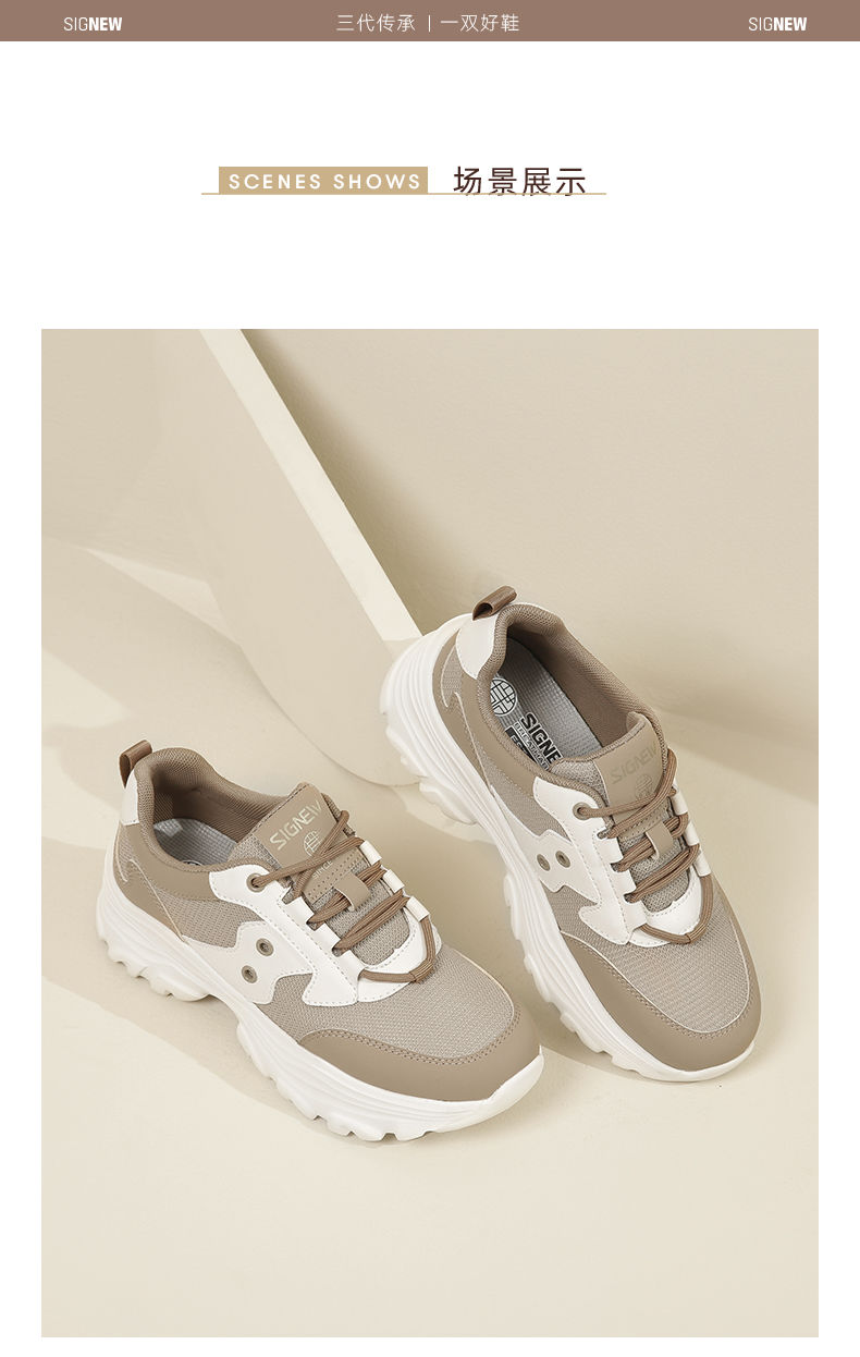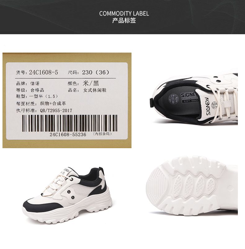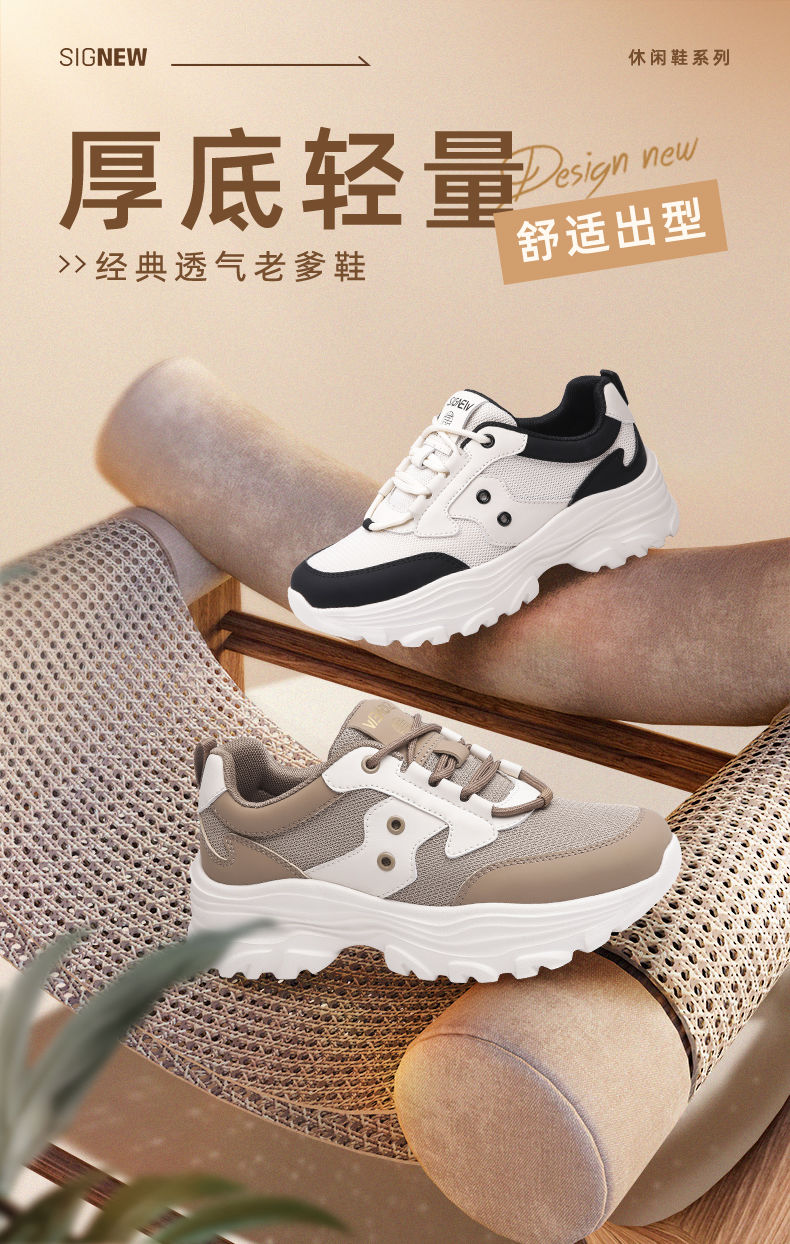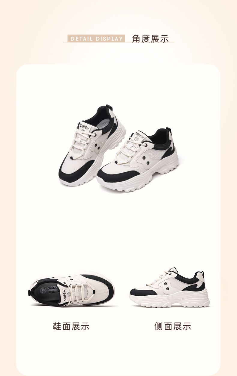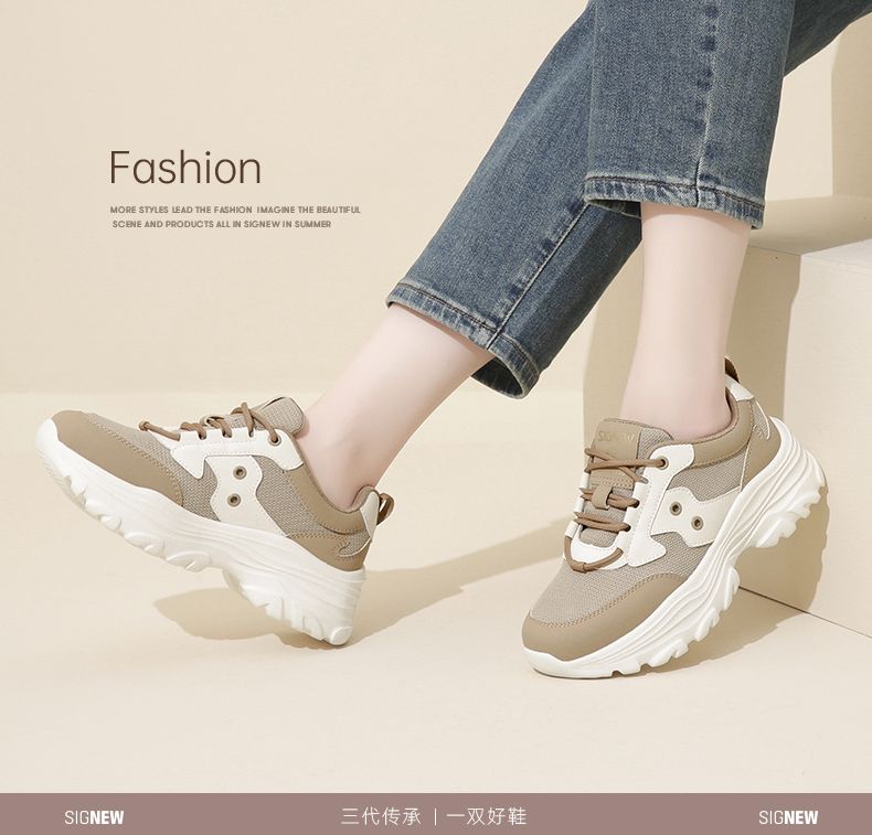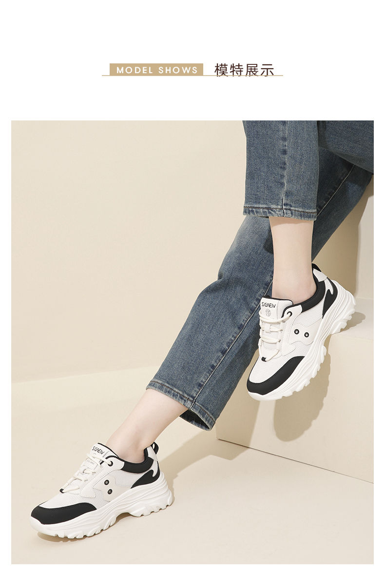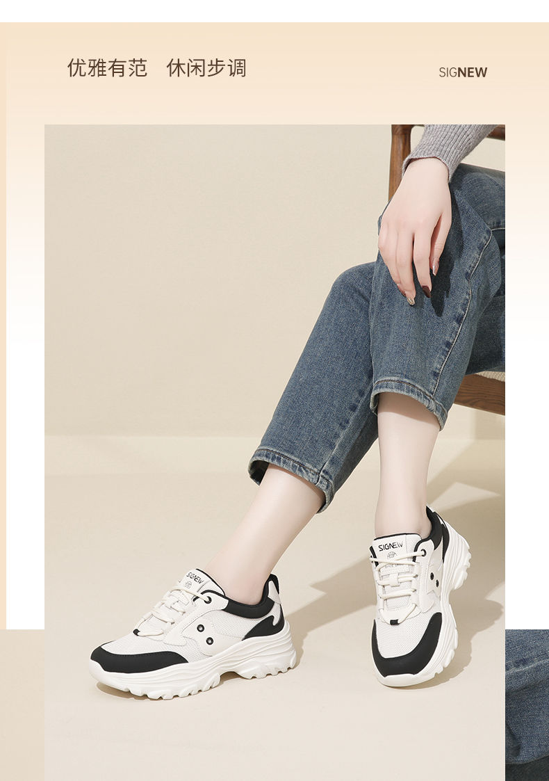 信诺轻便老爹鞋女2024春季新款运动风增高厚底软底女士百搭休闲鞋24C1608-5