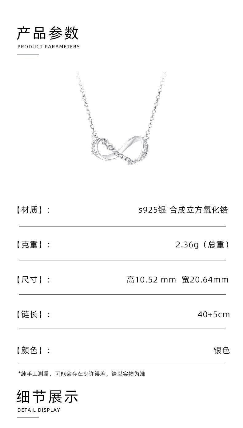 卡蒂罗/KADER 莫比乌斯系列 星河项链 925银璀璨满天星闪耀银河无限爱设计可调节锁骨链 简约大气浪漫精致吊坠 生日