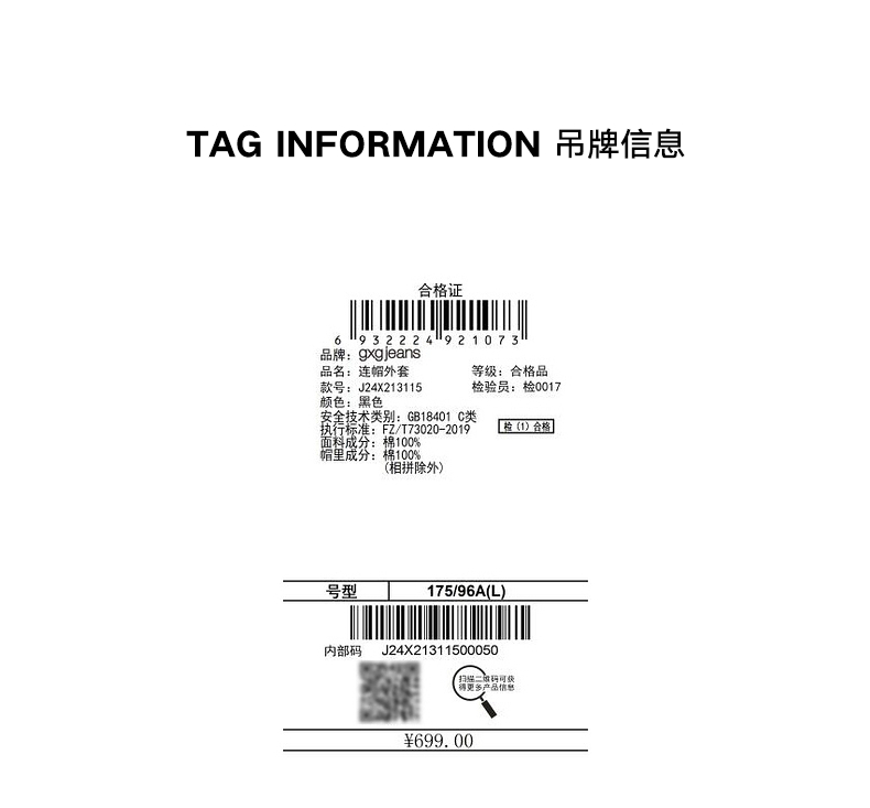 gxg.jeans男装秋季热卖简约时尚连帽外套J24X213115