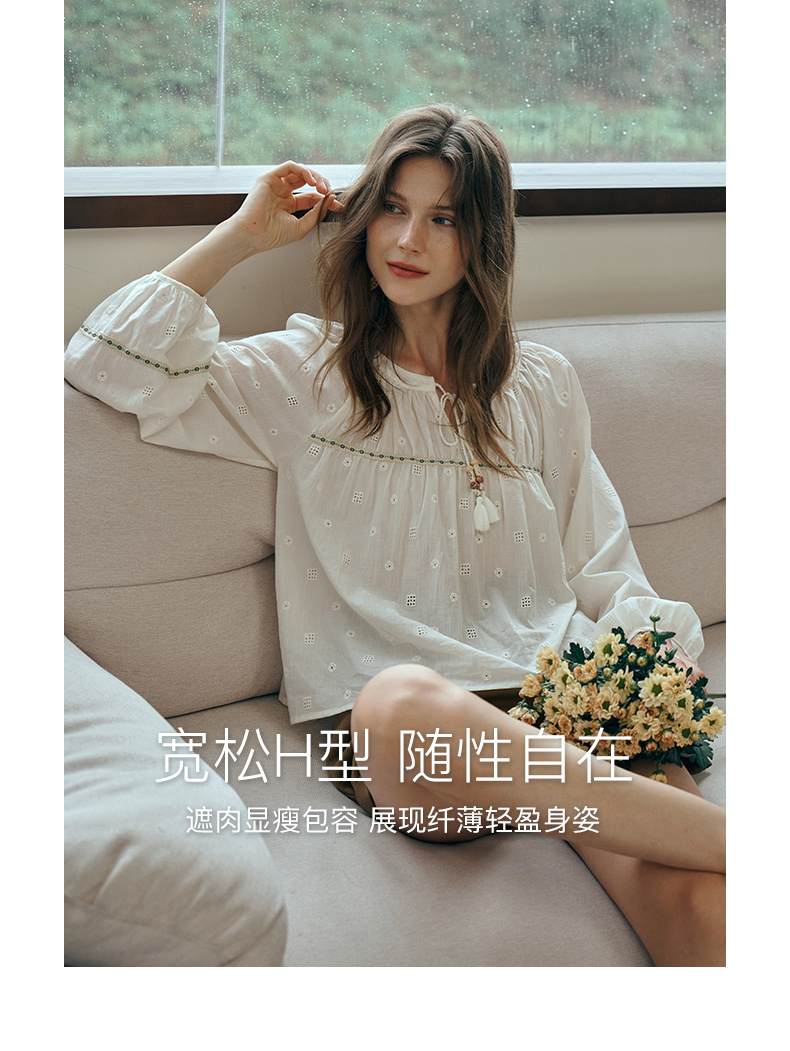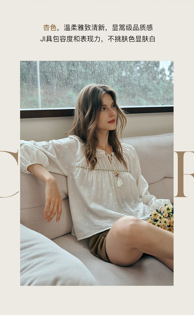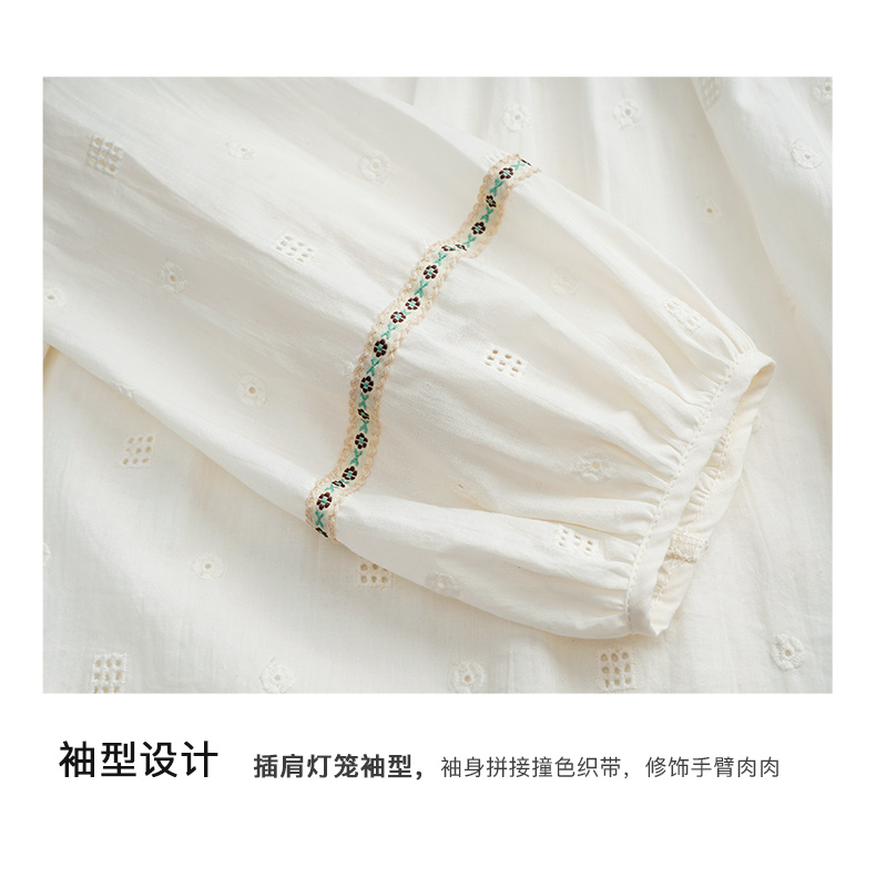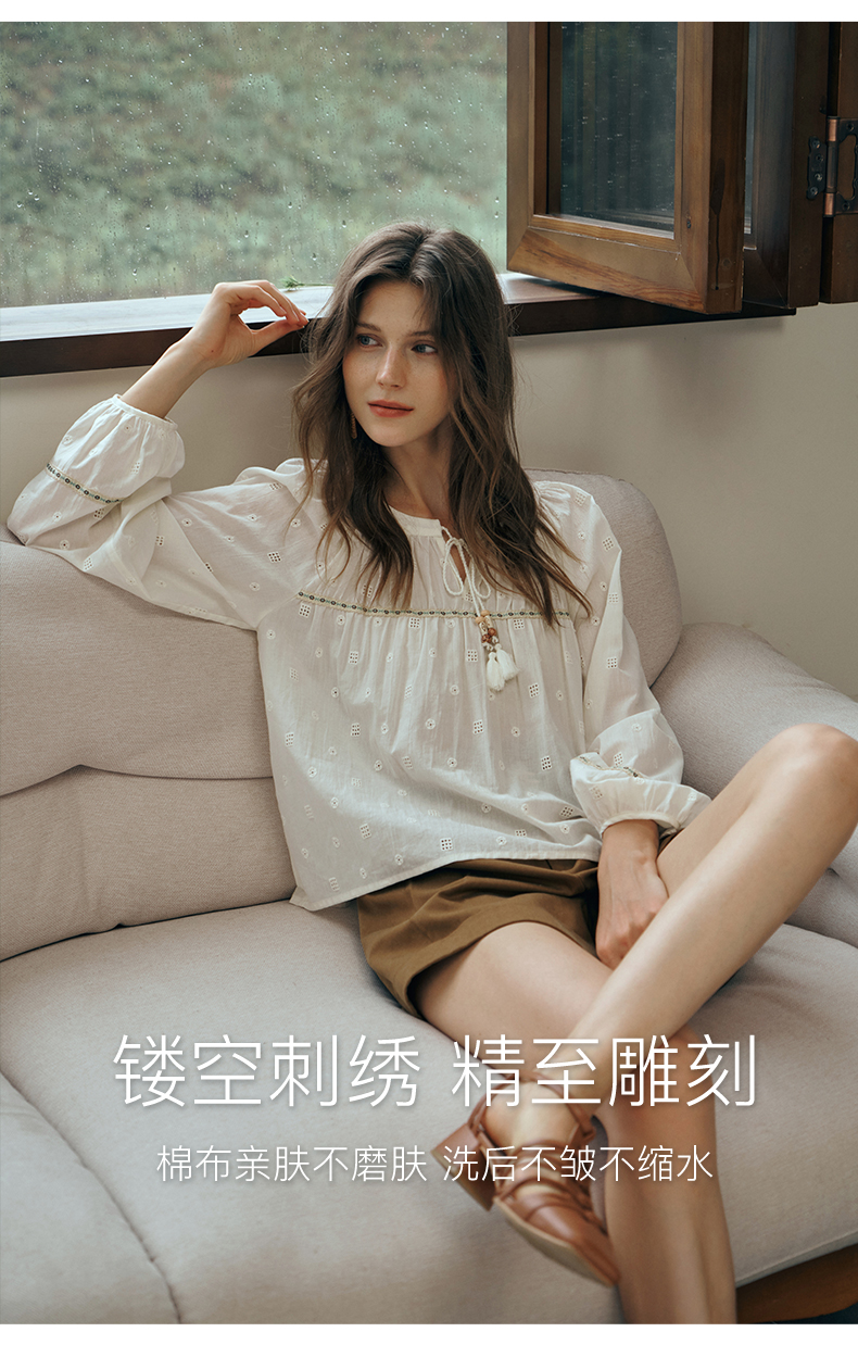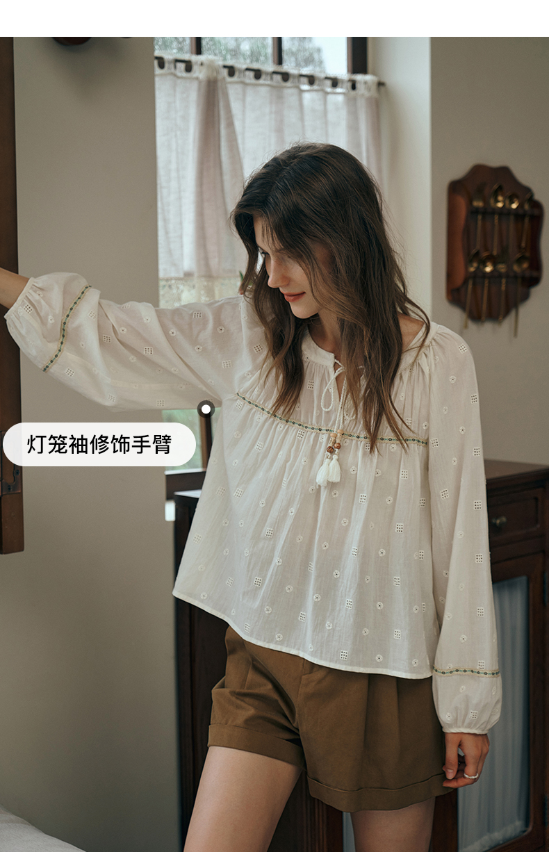 OLrain欧芮儿蕾丝雪纺衫女初秋2023年新款刺绣镂空立体提花娃娃衫