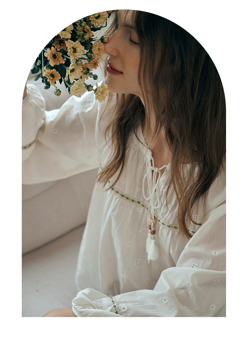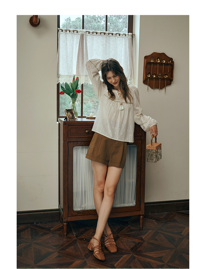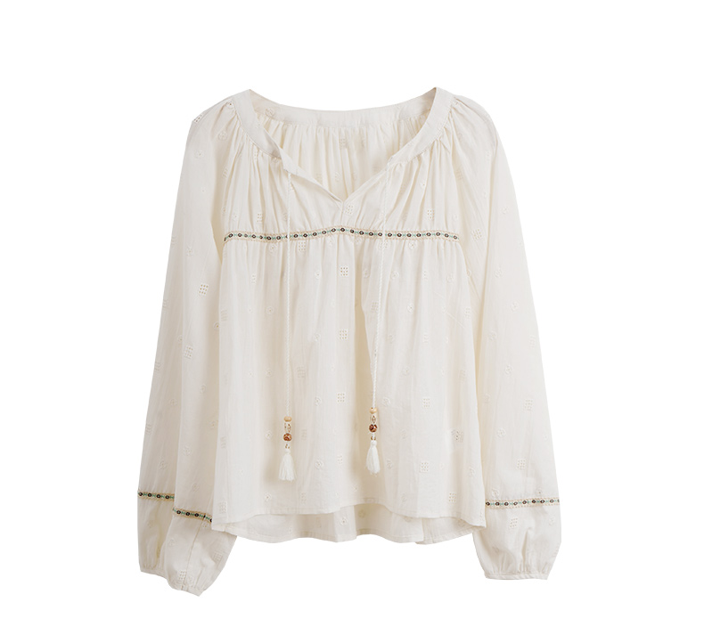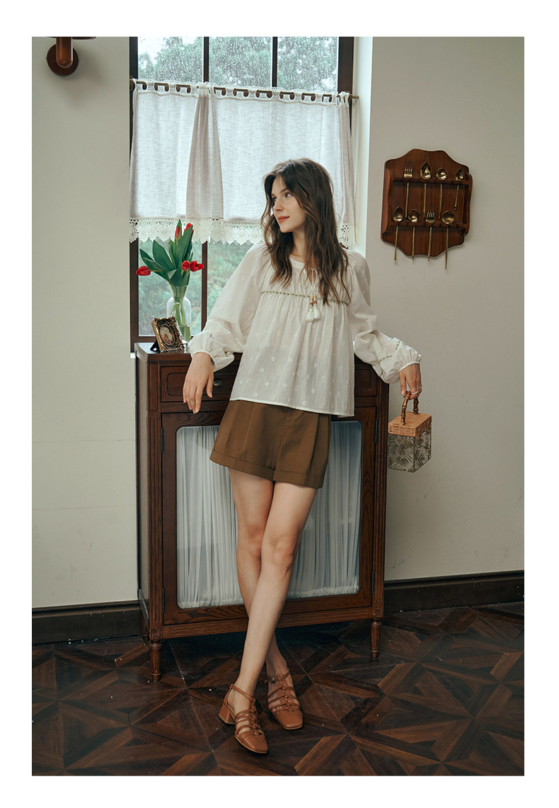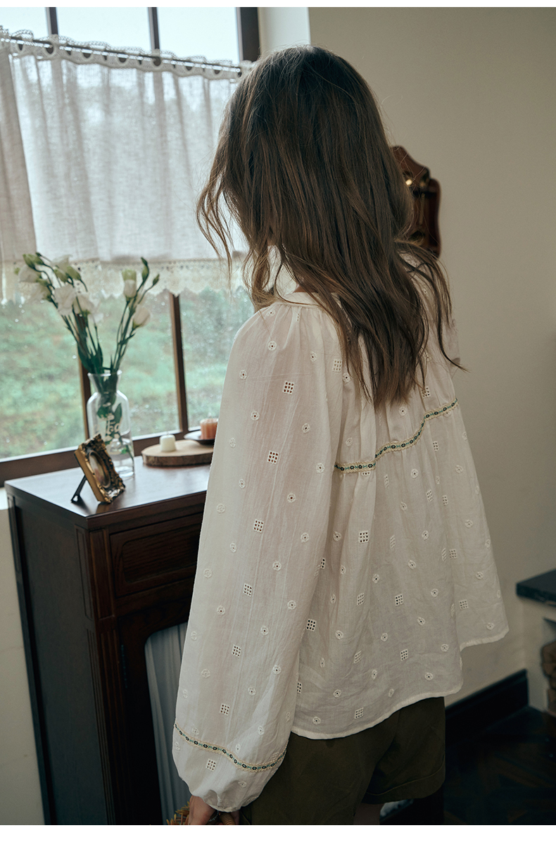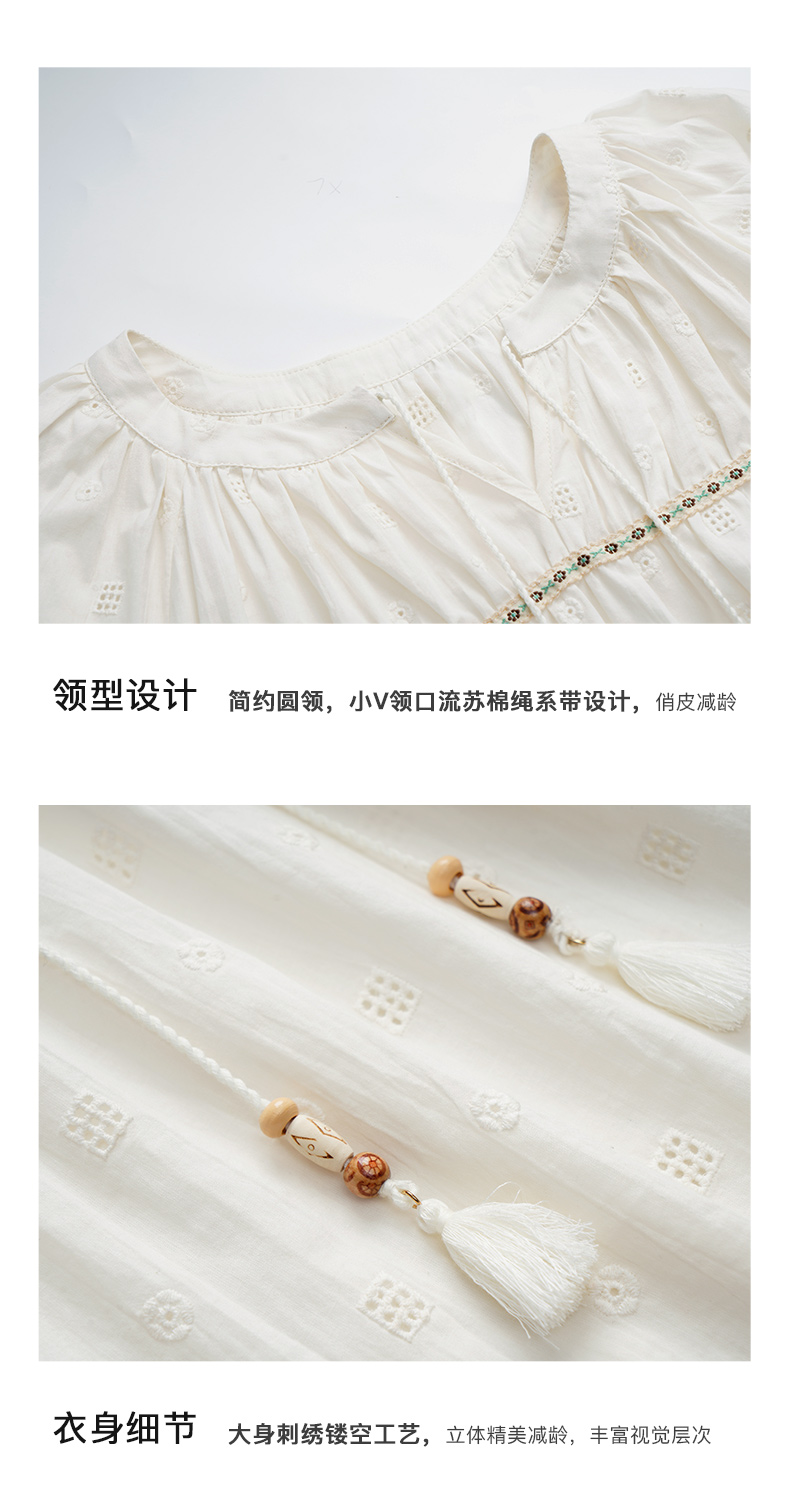OLrain欧芮儿蕾丝雪纺衫女初秋2023年新款刺绣镂空立体提花娃娃衫