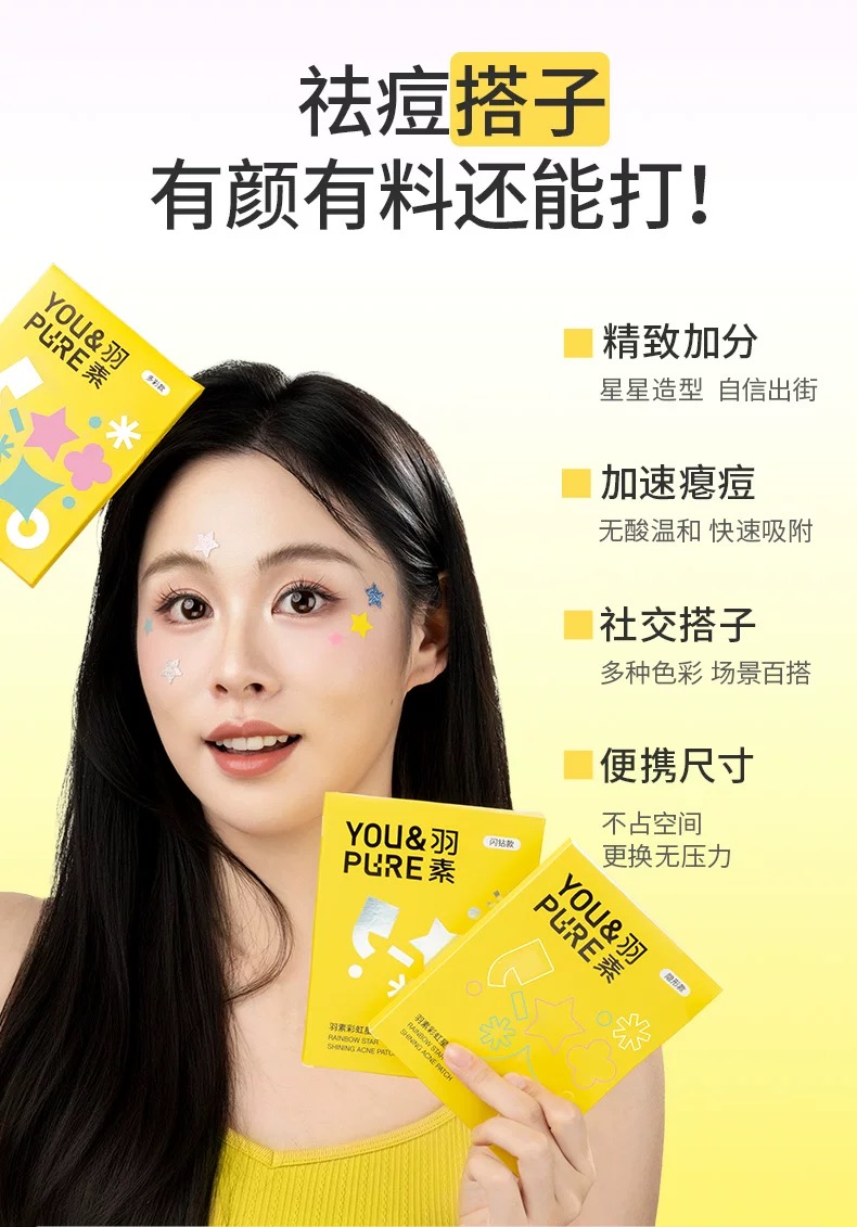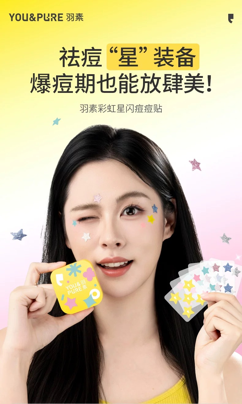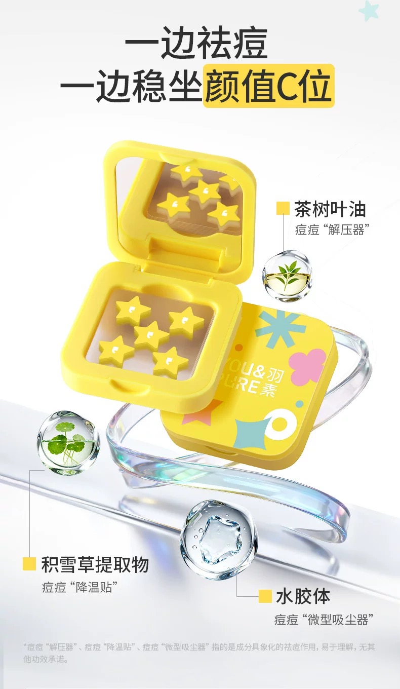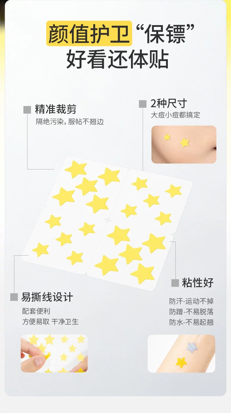 羽素星星痘痘贴男女遮瑕隐形祛痘贴可爱五角星闪豆豆贴可上妆青春
