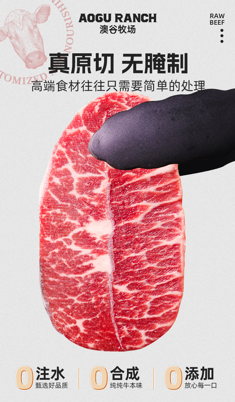 澳洲纯血黑安格斯谷饲安格斯M5雪花板腱牛排新鲜