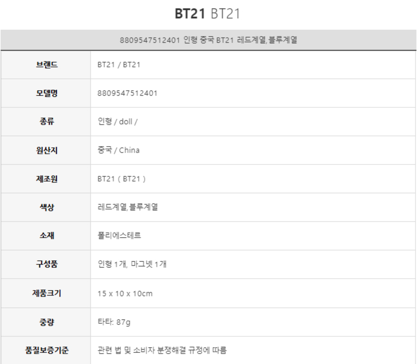 Line Friends BT21 TATA磁铁躺娃娃套装