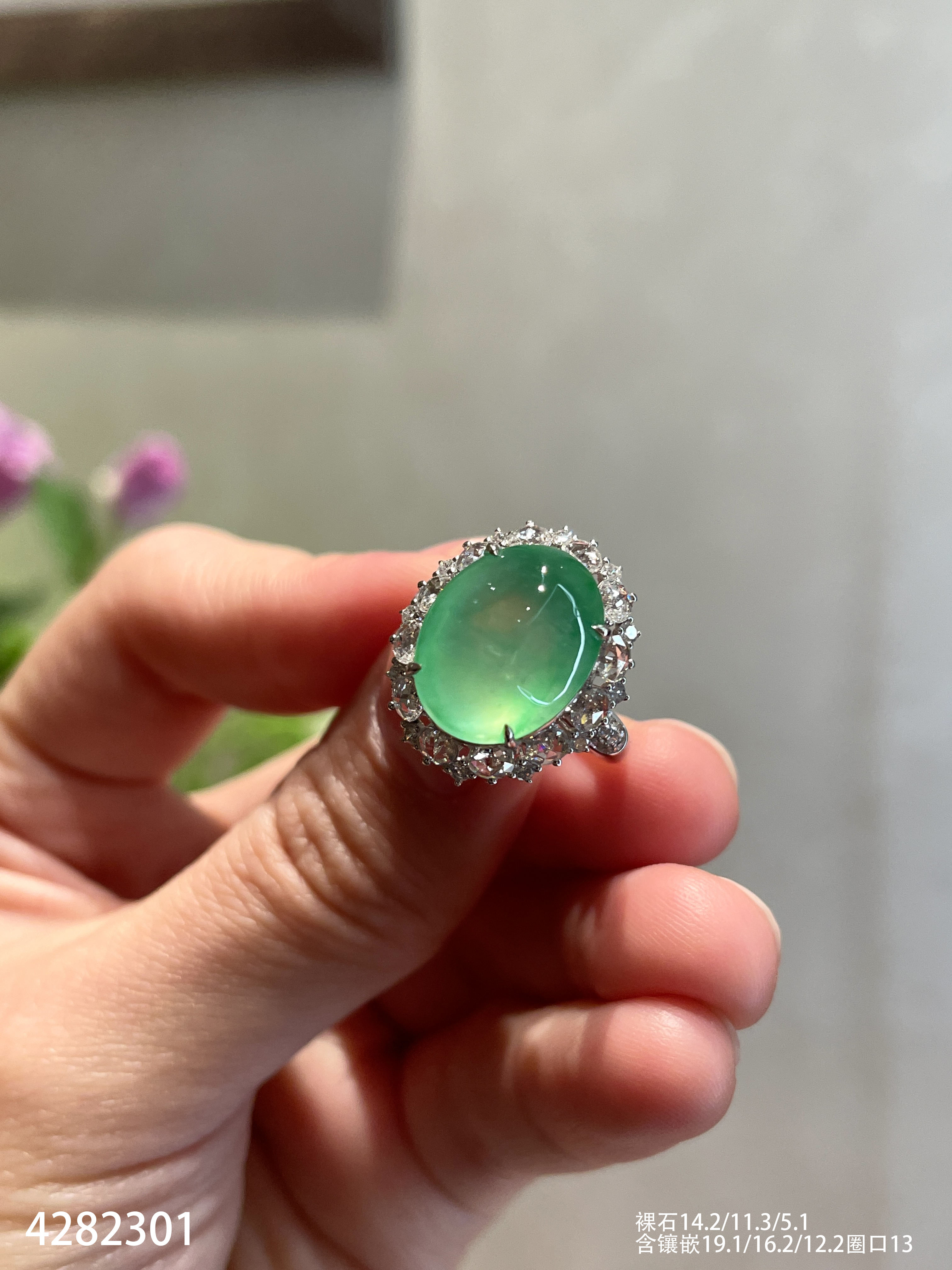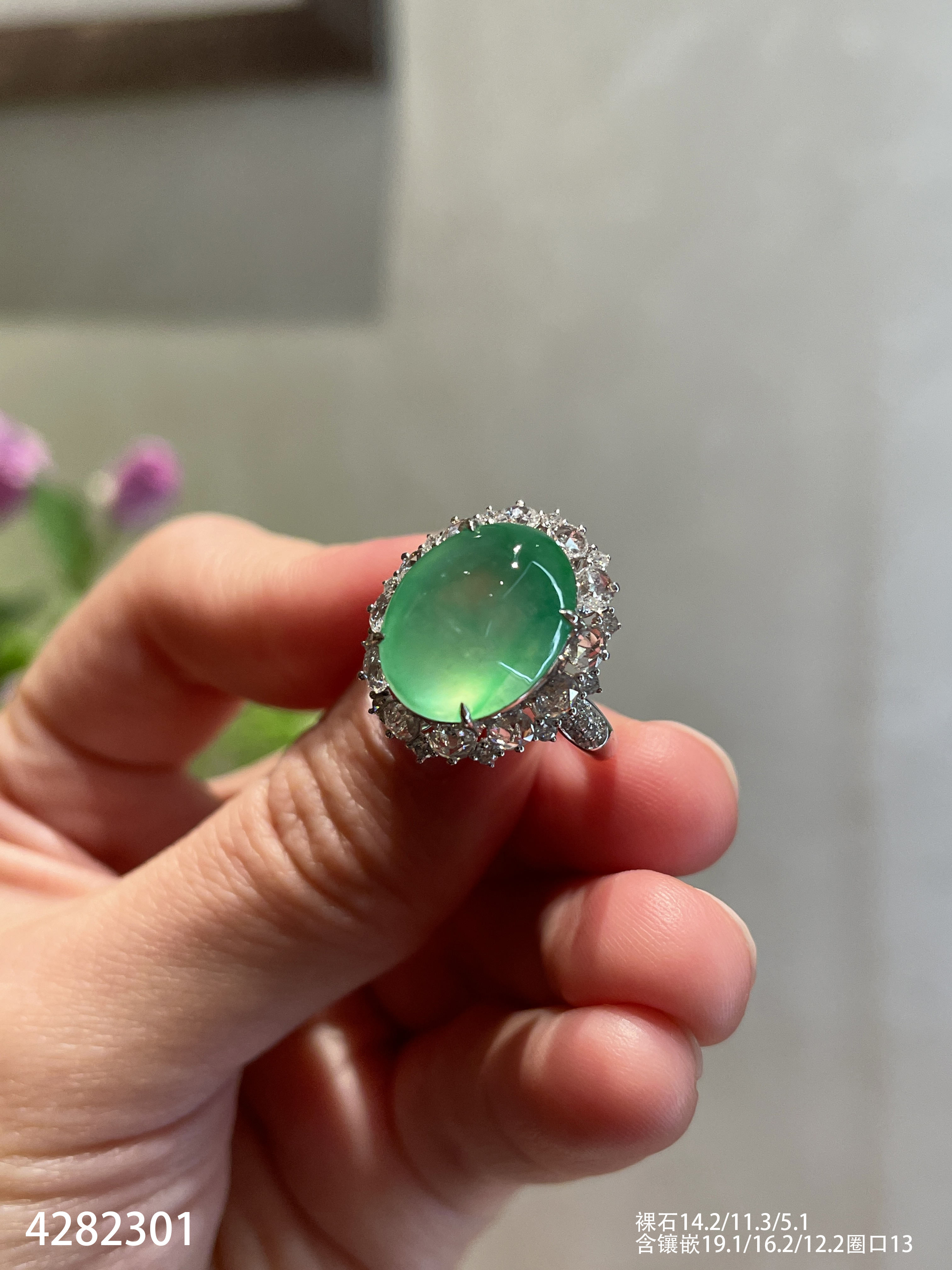 玻璃种帝王绿蛋面耳坠【6023104】具体价格微信咨询