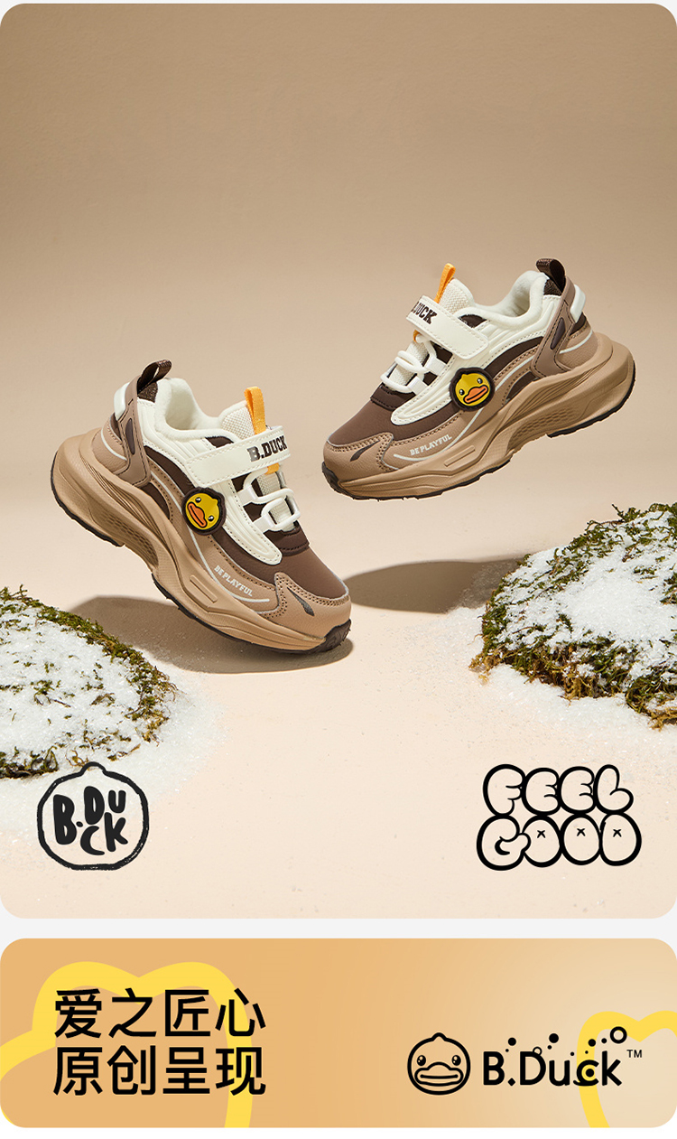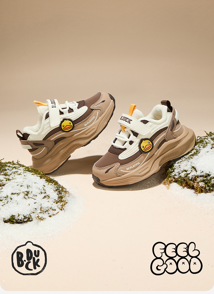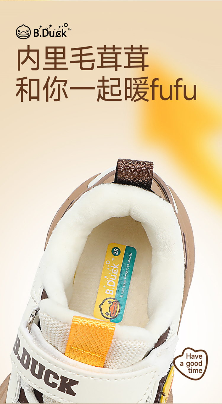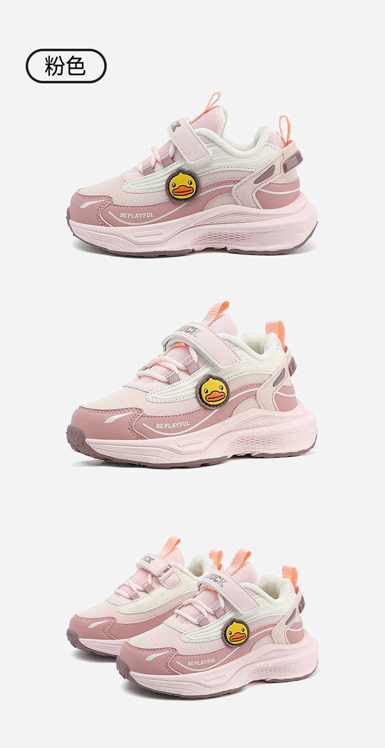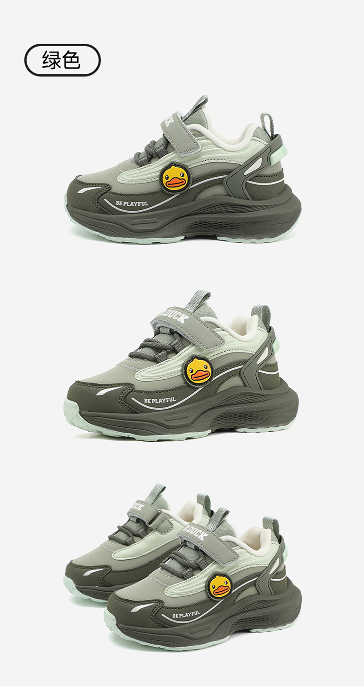 B.Duck小黄鸭童鞋防滑加绒运动鞋冬季男女童魔术贴26-33 B5586886