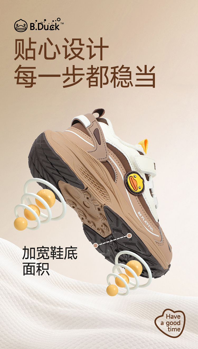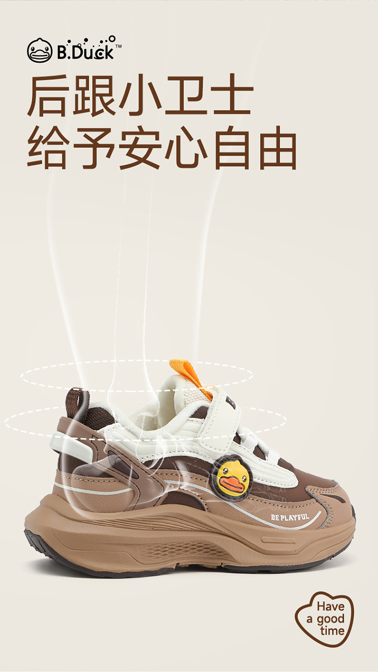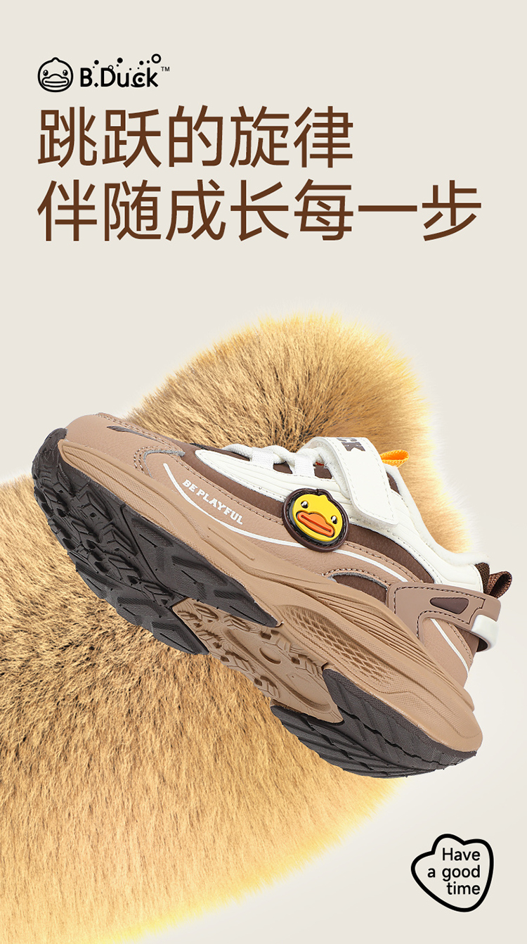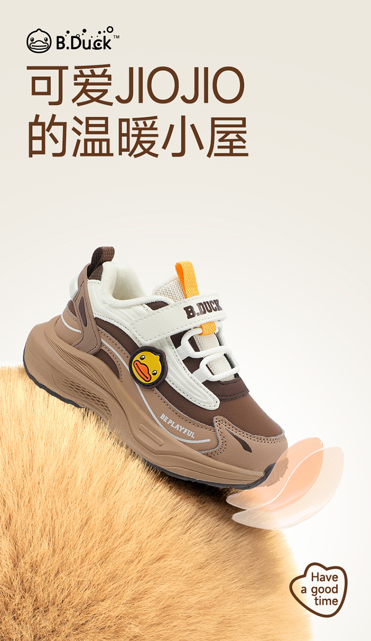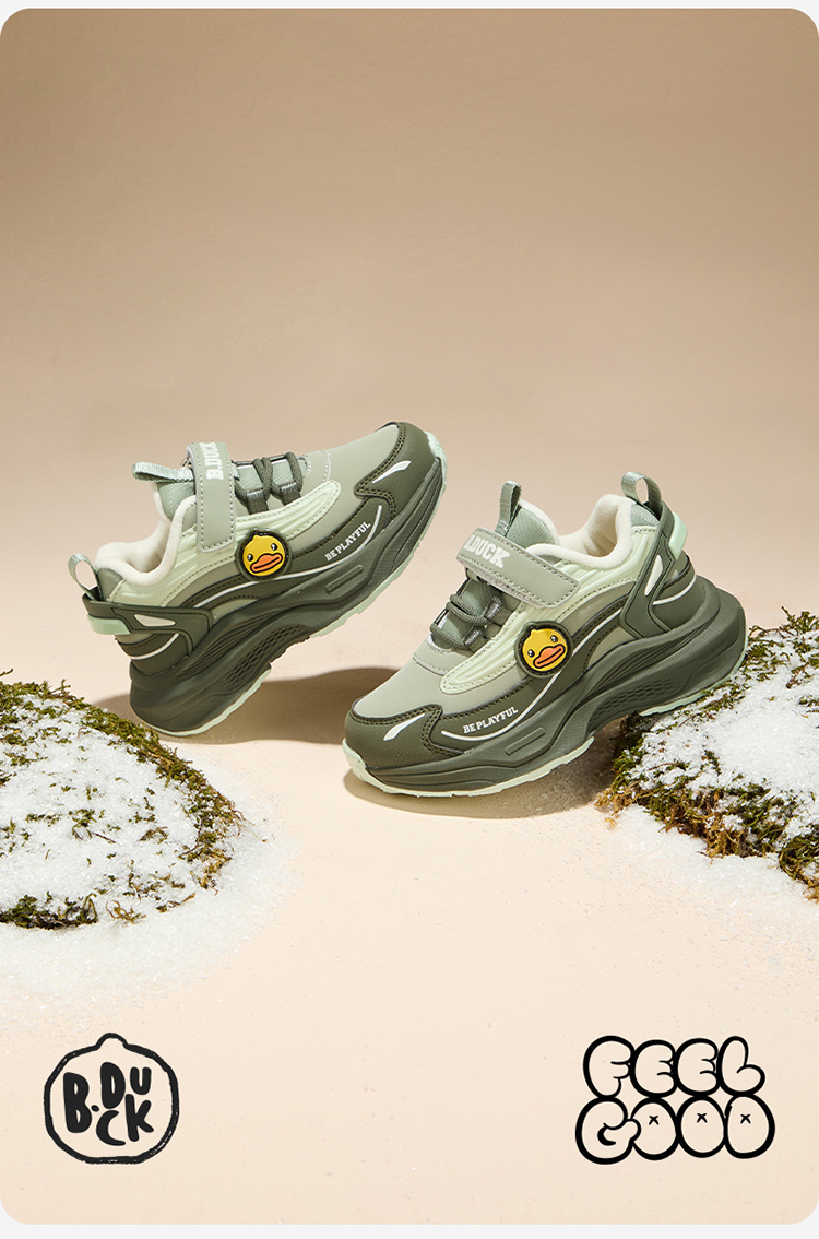 B.Duck小黄鸭童鞋防滑加绒运动鞋冬季男女童魔术贴26-33 B5586886