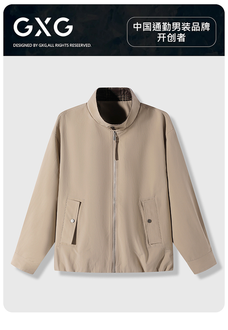 GXG男装26春季时尚复古撞色格纹简约行政通勤翻领休闲男式夹克K&C