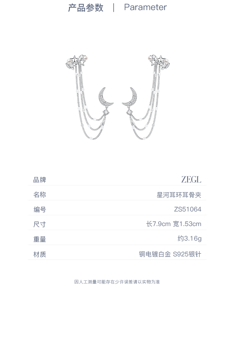 ZEGL设计师月映星河系列耳夹女无耳洞耳骨夹一体式耳环耳钉耳饰品