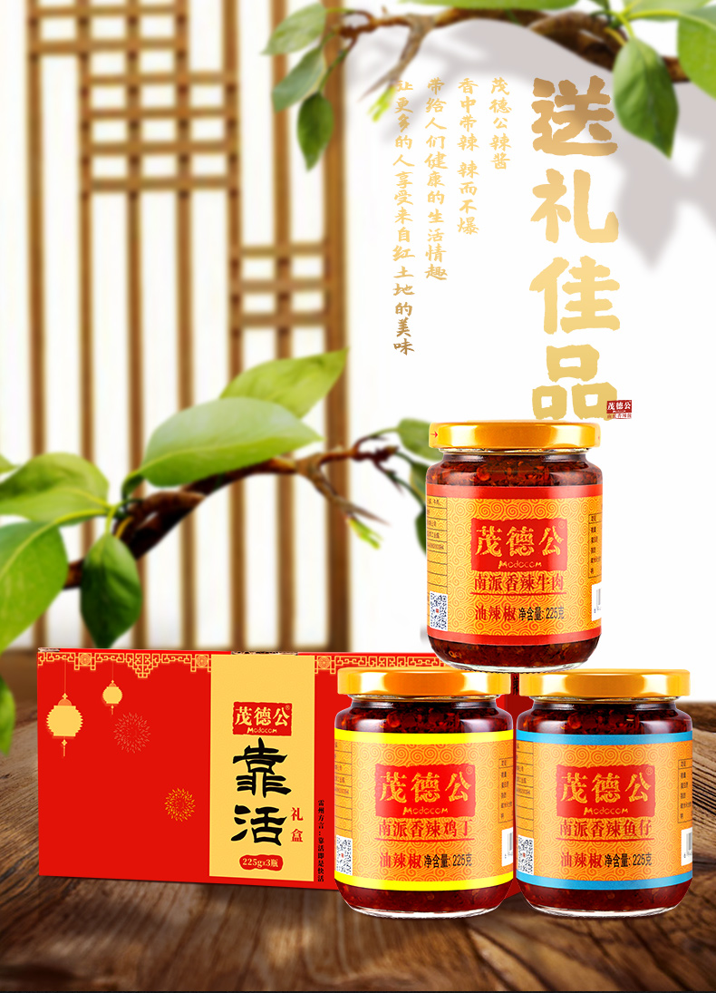 - 茂德公华南知名品牌,匠心之精心制作,保证产品品质及用户口碑;经营有:香辣酱、白酒、休闲零食、当地特产。