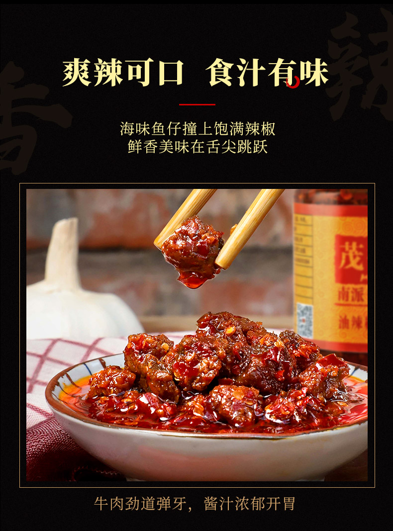 【茂德公香辣酱3种口味靠活礼盒】牛肉鱼仔鸡丁酱3种口味辣椒酱蒜蓉剁椒下饭拌饭辣酱225g*3
