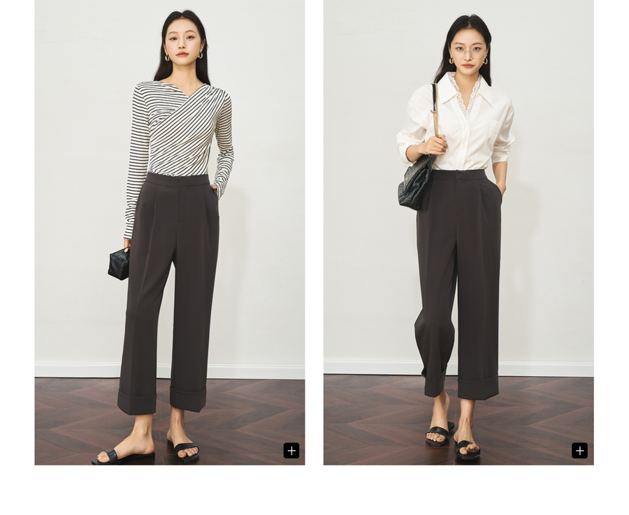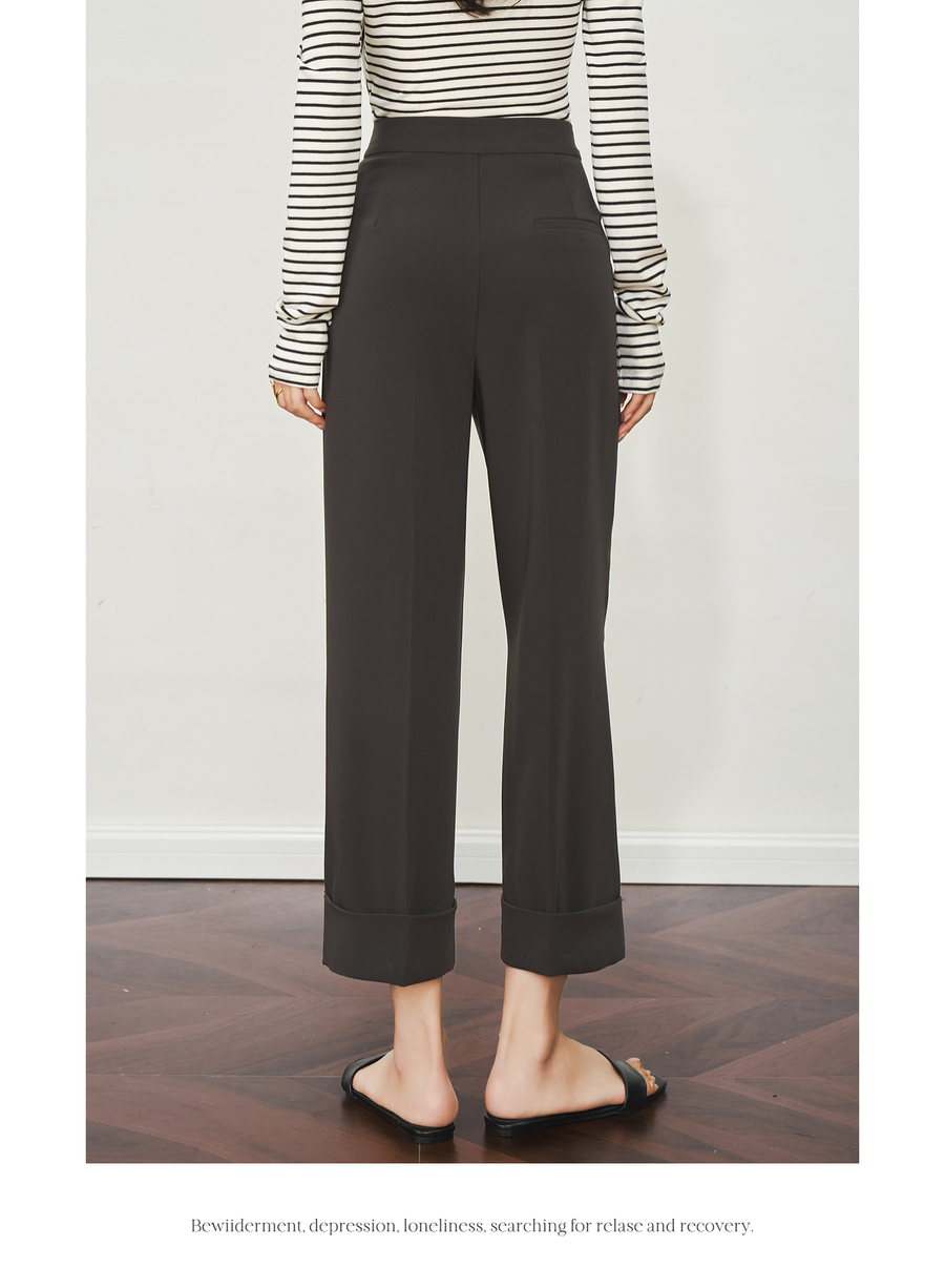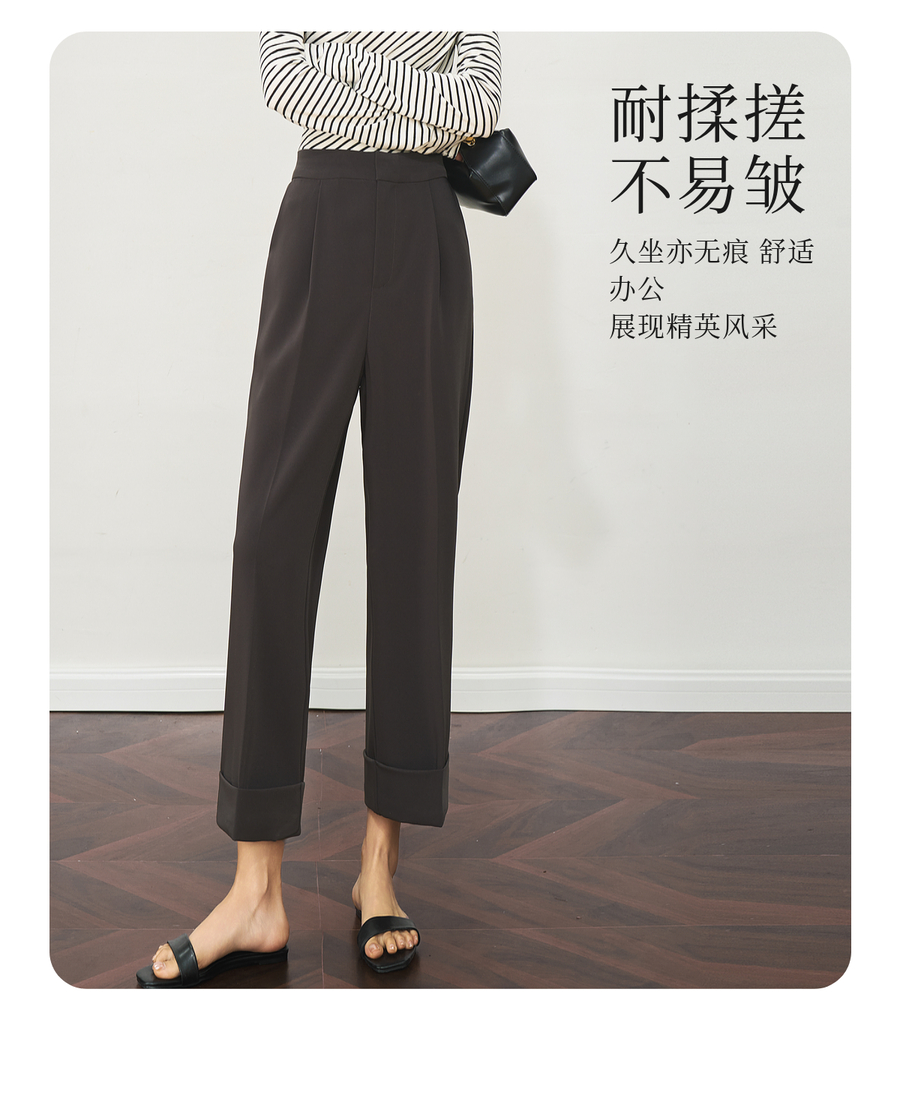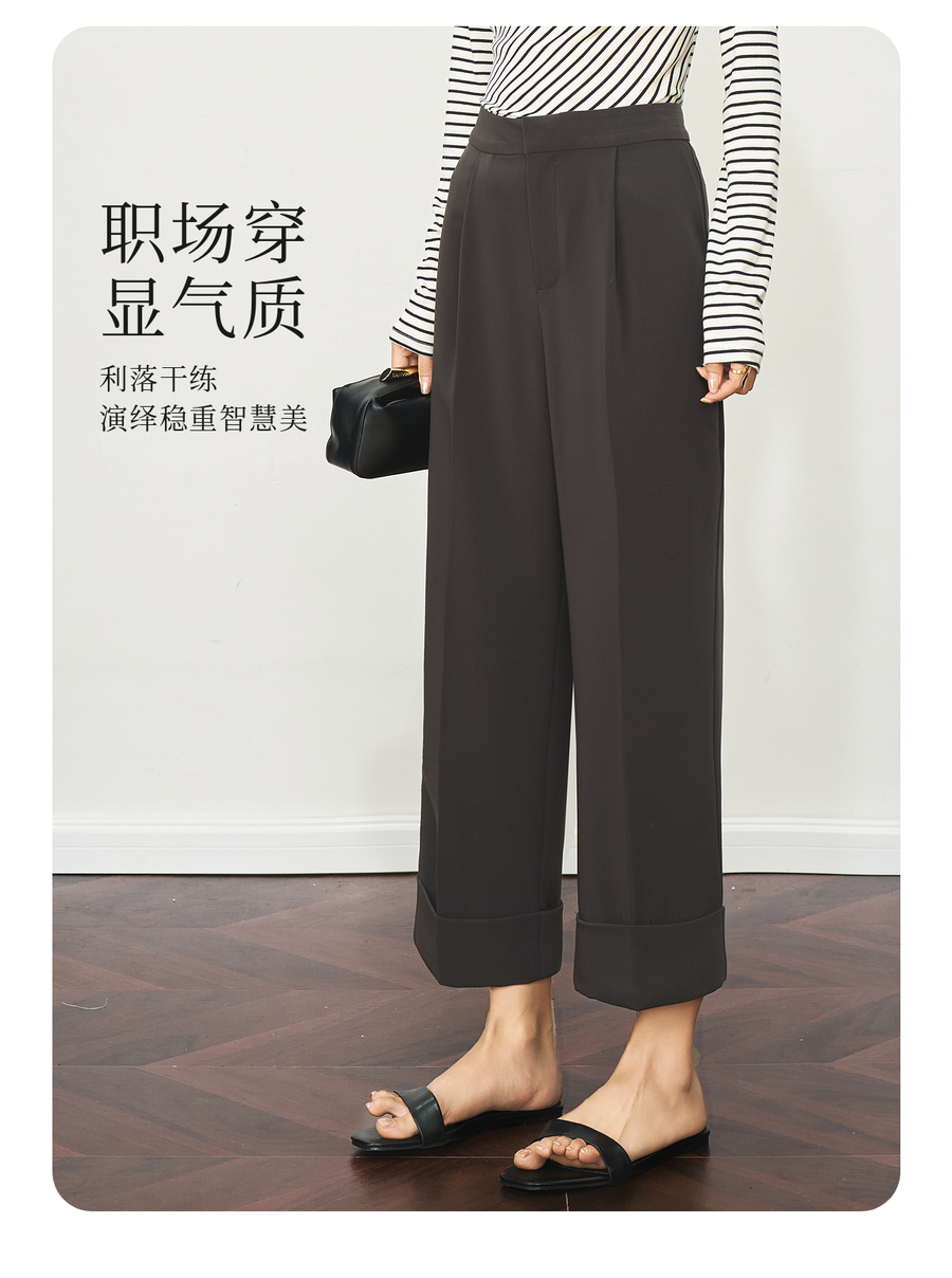 OLrain欧芮儿深灰色通勤休闲西装9分裤女夏季2025新款高腰直筒裤