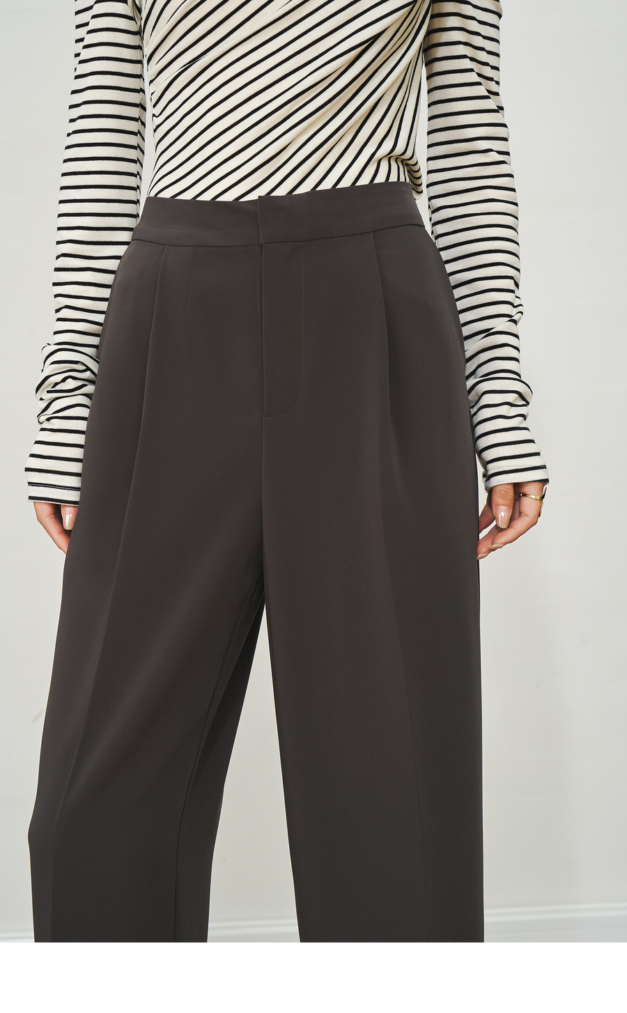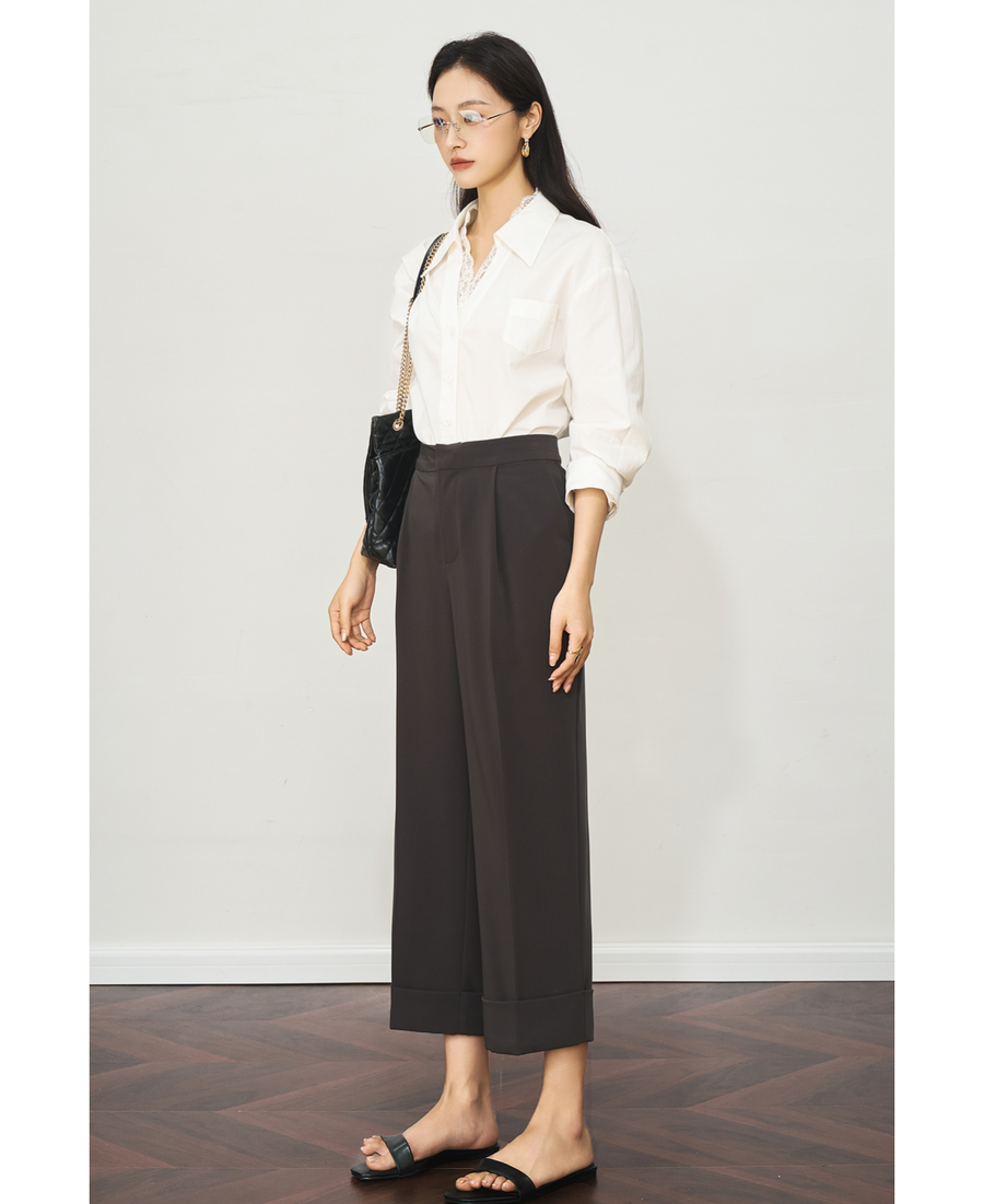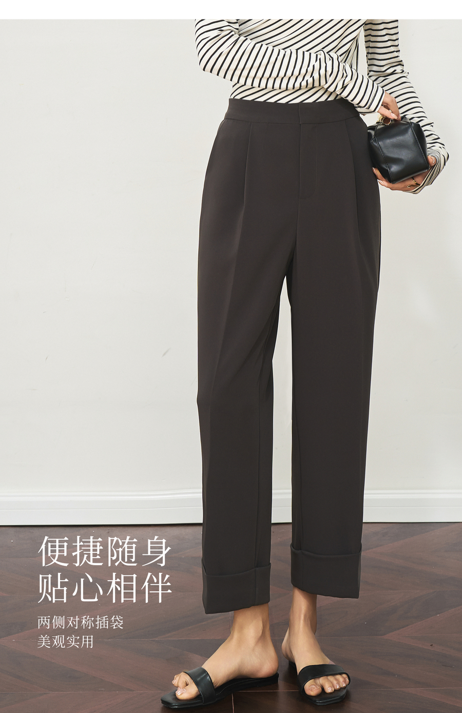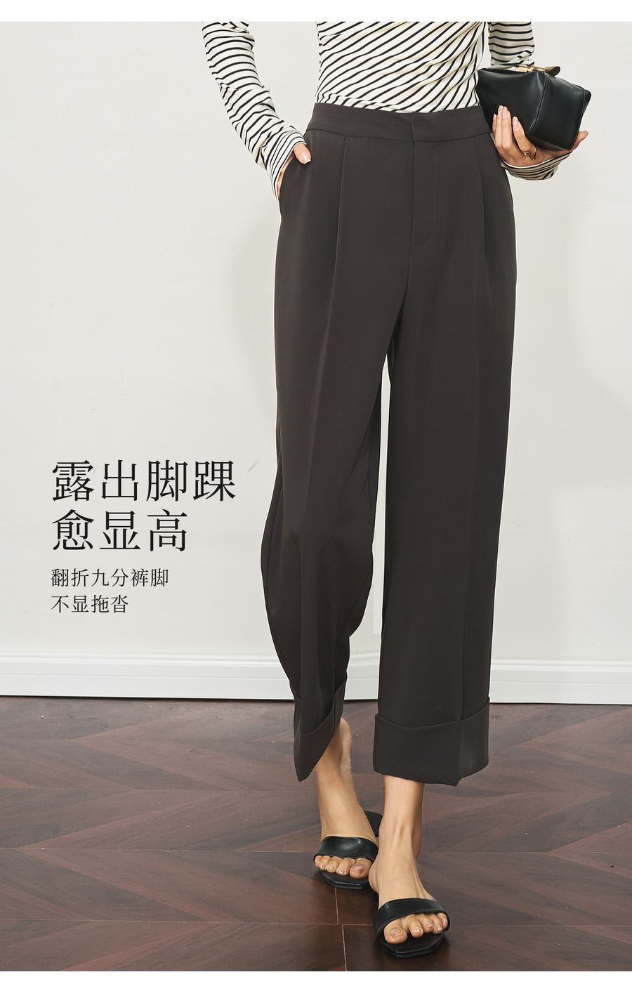 OLrain欧芮儿深灰色通勤休闲西装9分裤女夏季2025新款高腰直筒裤