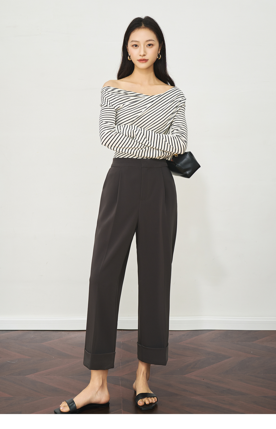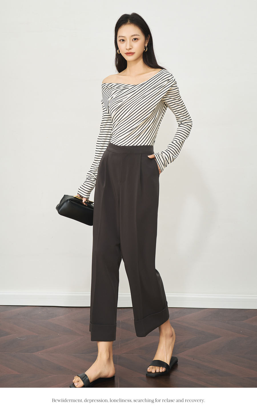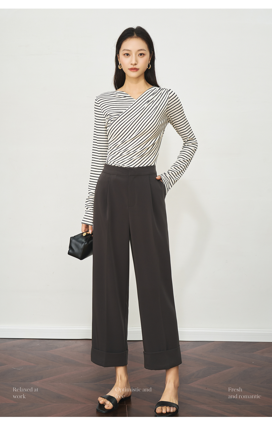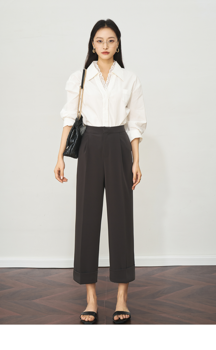 OLrain欧芮儿深灰色通勤休闲西装9分裤女夏季2025新款高腰直筒裤