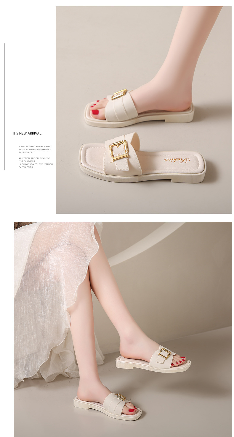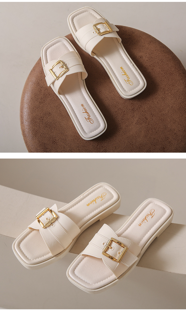 「19.9到手!三色可选」时尚拖鞋女士夏季外穿防滑沙滩鞋新款方扣平底一字休闲凉拖鞋 商品图0