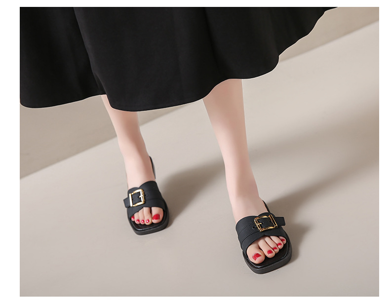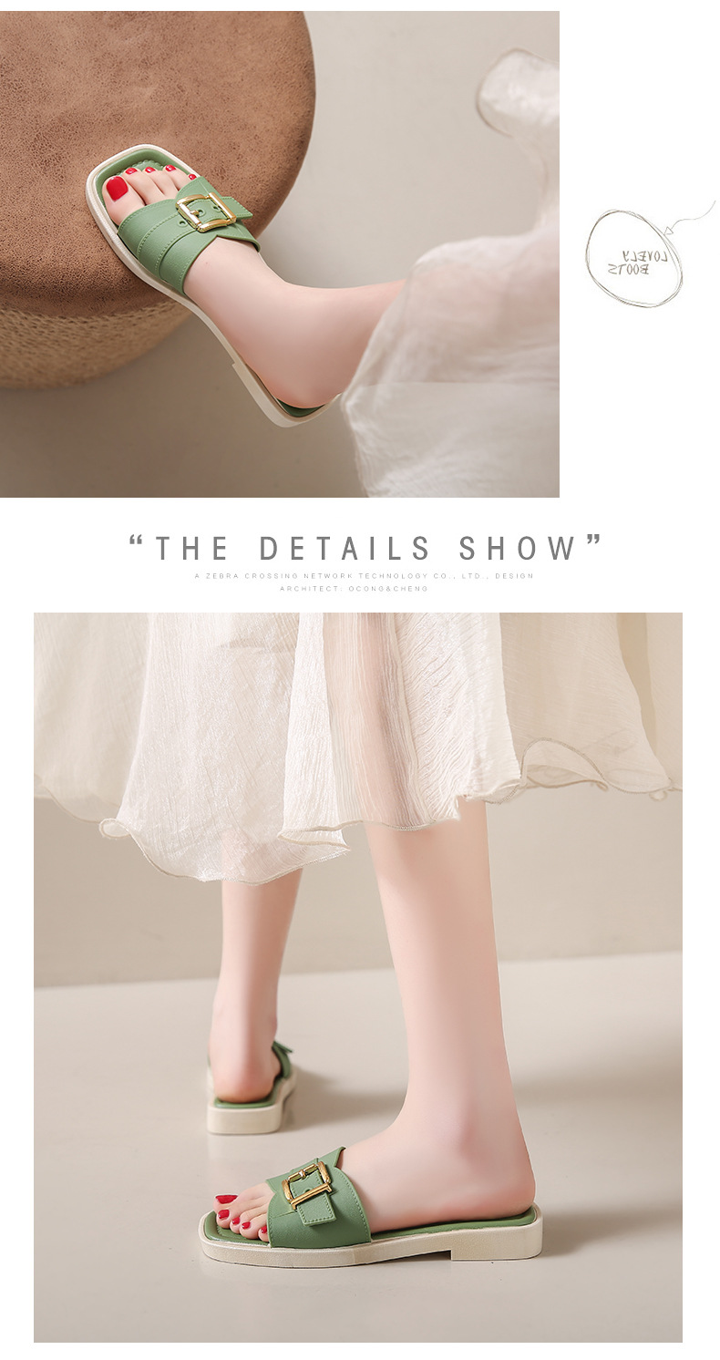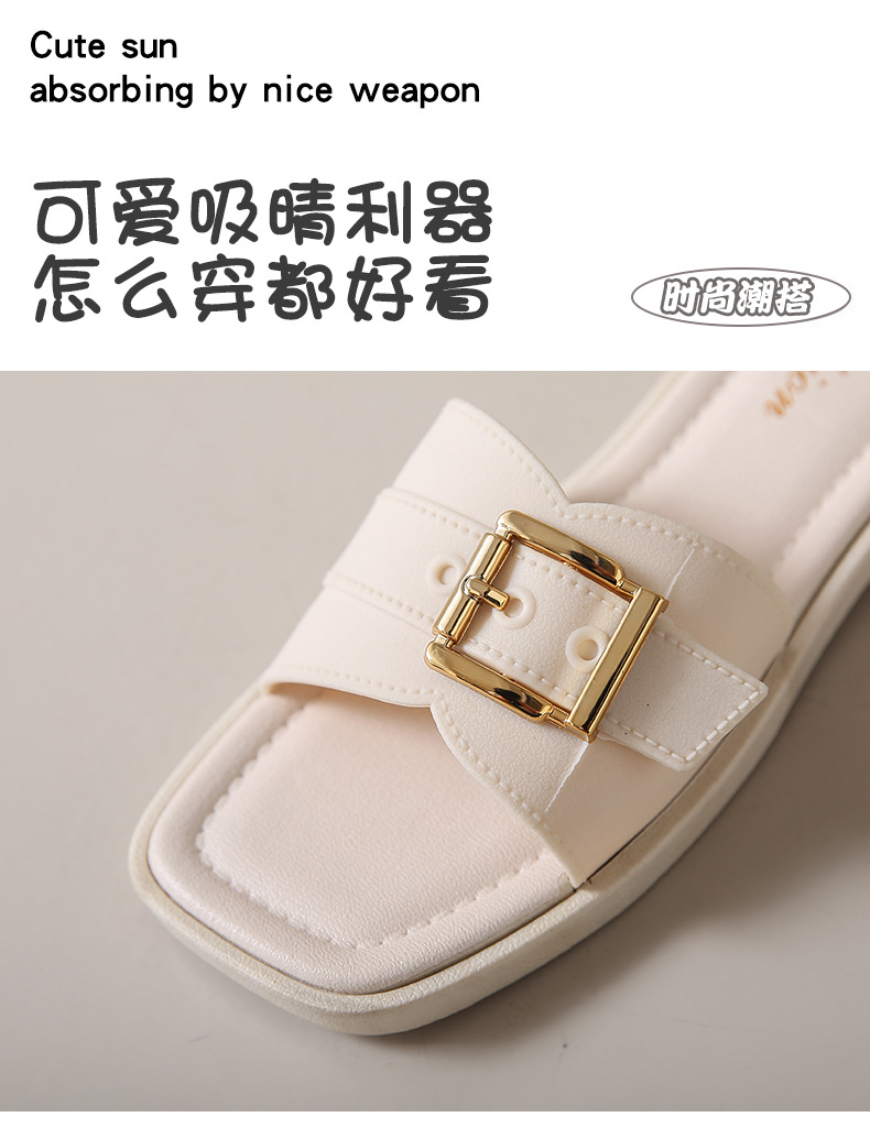 「19.9到手!三色可选」时尚拖鞋女士夏季外穿防滑沙滩鞋新款方扣平底一字休闲凉拖鞋 商品图4