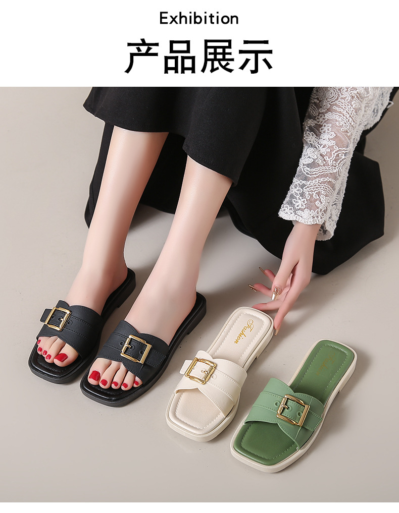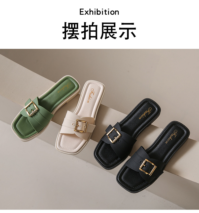 「19.9到手!三色可选」时尚拖鞋女士夏季外穿防滑沙滩鞋新款方扣平底一字休闲凉拖鞋 商品图3