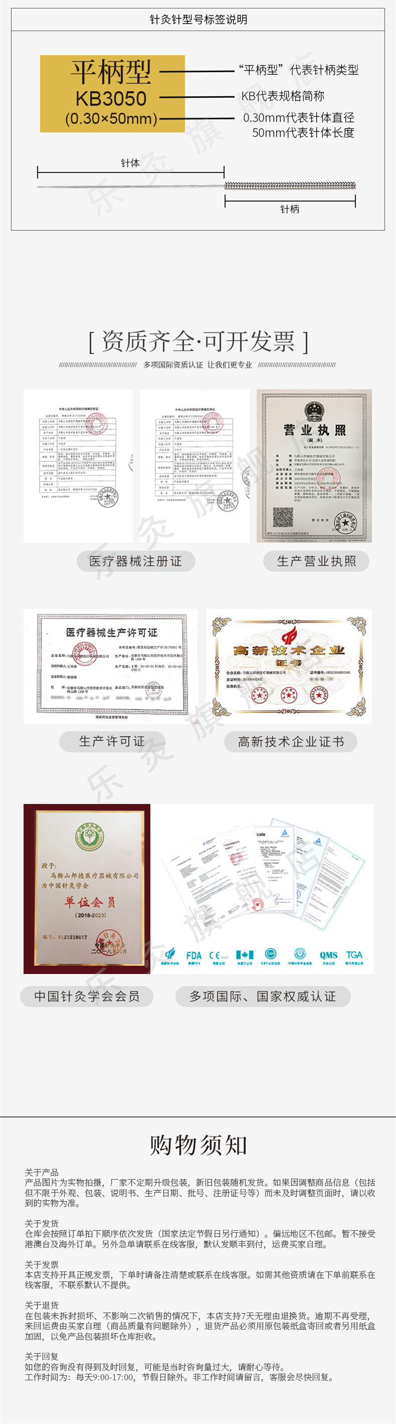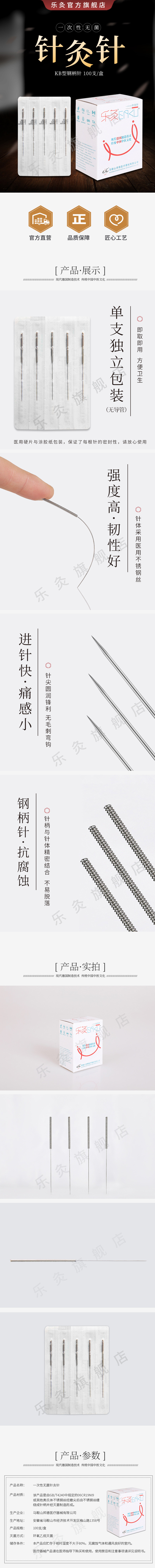 乐灸牌一次性无菌针灸针  平柄型KB10盒, 100支/盒 商品图4
