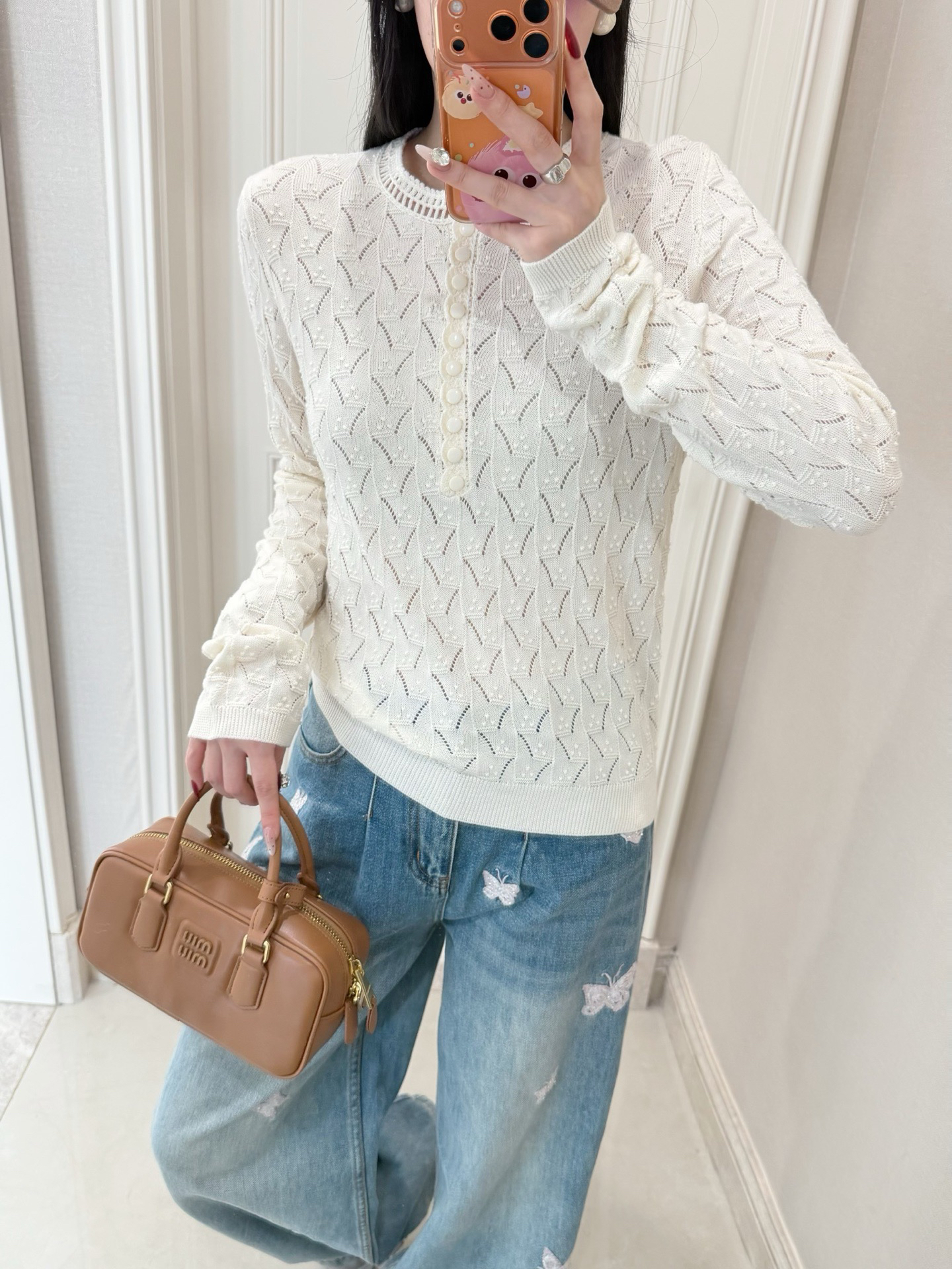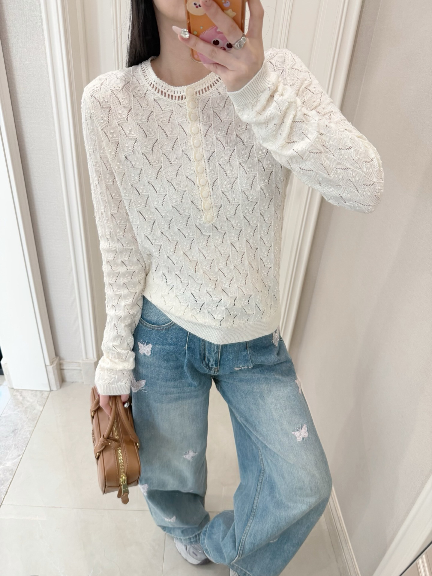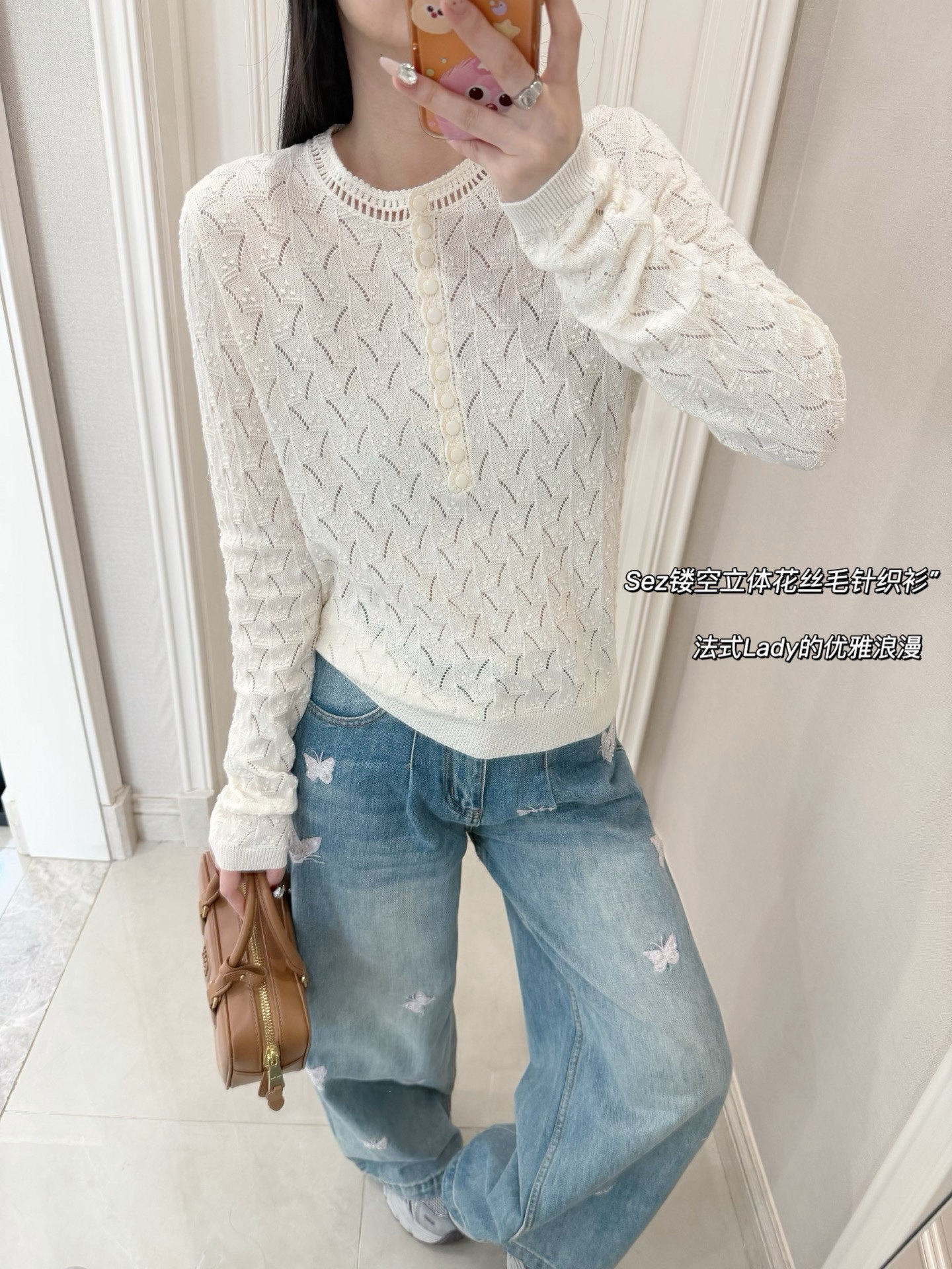 美得冒仙气儿🤩孔孝真同款👏🏻爱Sez家法式浪漫风格的姐妹闭眼入就对了,它家的款就是对仙气貌美的最好的诠释~镂空领边配立体花纹挑洞针织,亨利领式的纽扣花边半开襟,温柔米色调百搭耐看,基础款圆领正肩针织衫版型,配上极繁主义热爱的温柔复古元素,优雅精致得不得了~简单点配牛仔裤,清爽日常又有松弛的从容感,搭同样别致的蕾丝裤花苞裙,就完全就是法国Lady的腔调感~是一种让人无法拒绝的美💓