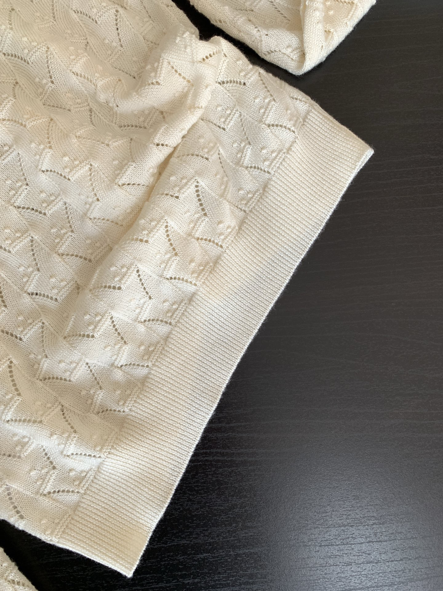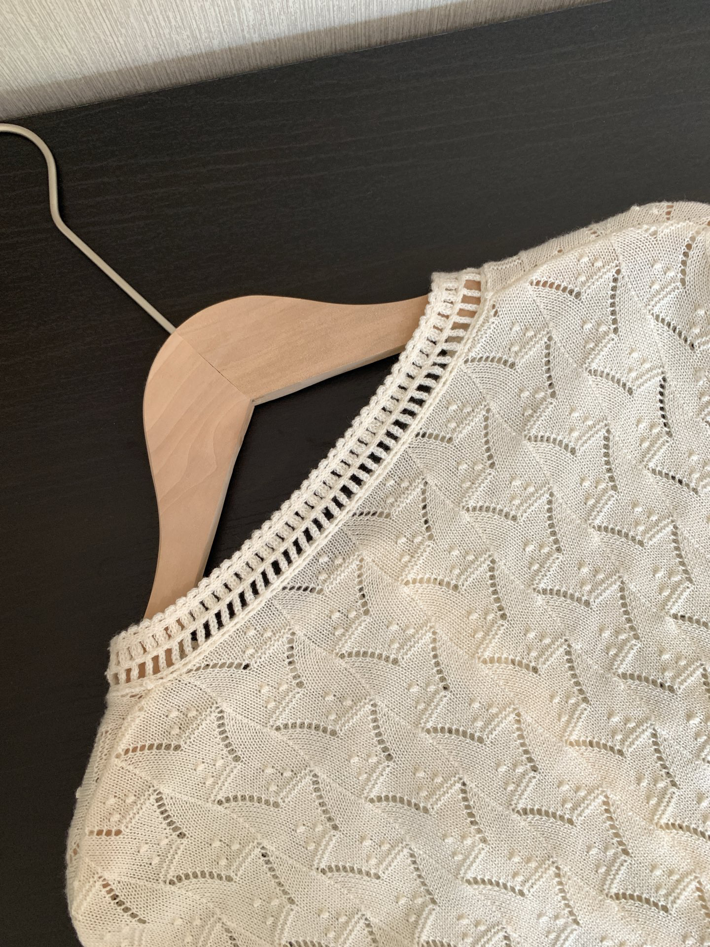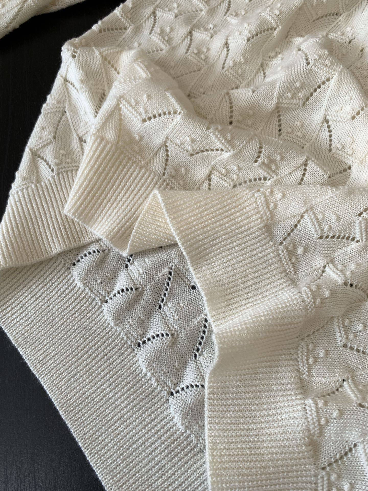 领口单独做镂空钩织,纽扣门襟做完花边钩织后手工套扣衔接,袖口下摆做螺纹织法保型,小细节非常多非常细致~