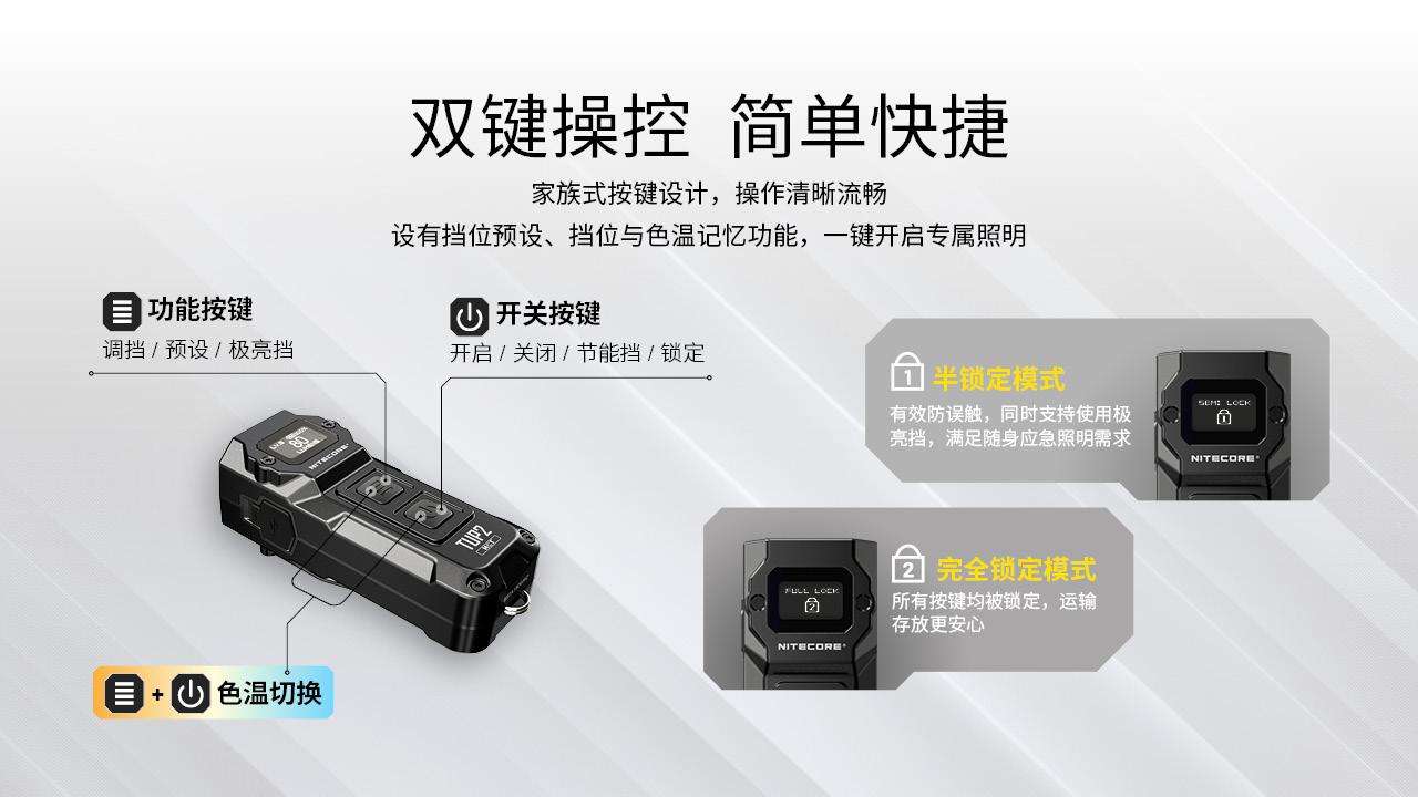 NITECORE奈特科尔TUP2三色温MCT钥匙灯多功能照明